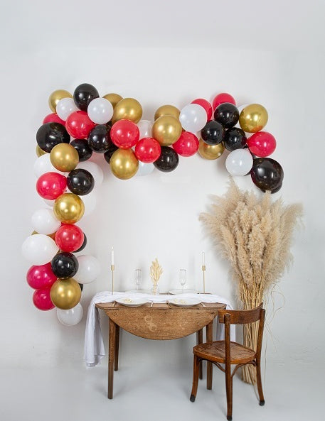 Réalisez une décoration spectaculaire grâce à ce kit complet pour arche de ballons blanche, rouge, noire et or de 60 pièces. Ce set pratique contient tous les accessoires nécessaires pour un montage réussi.