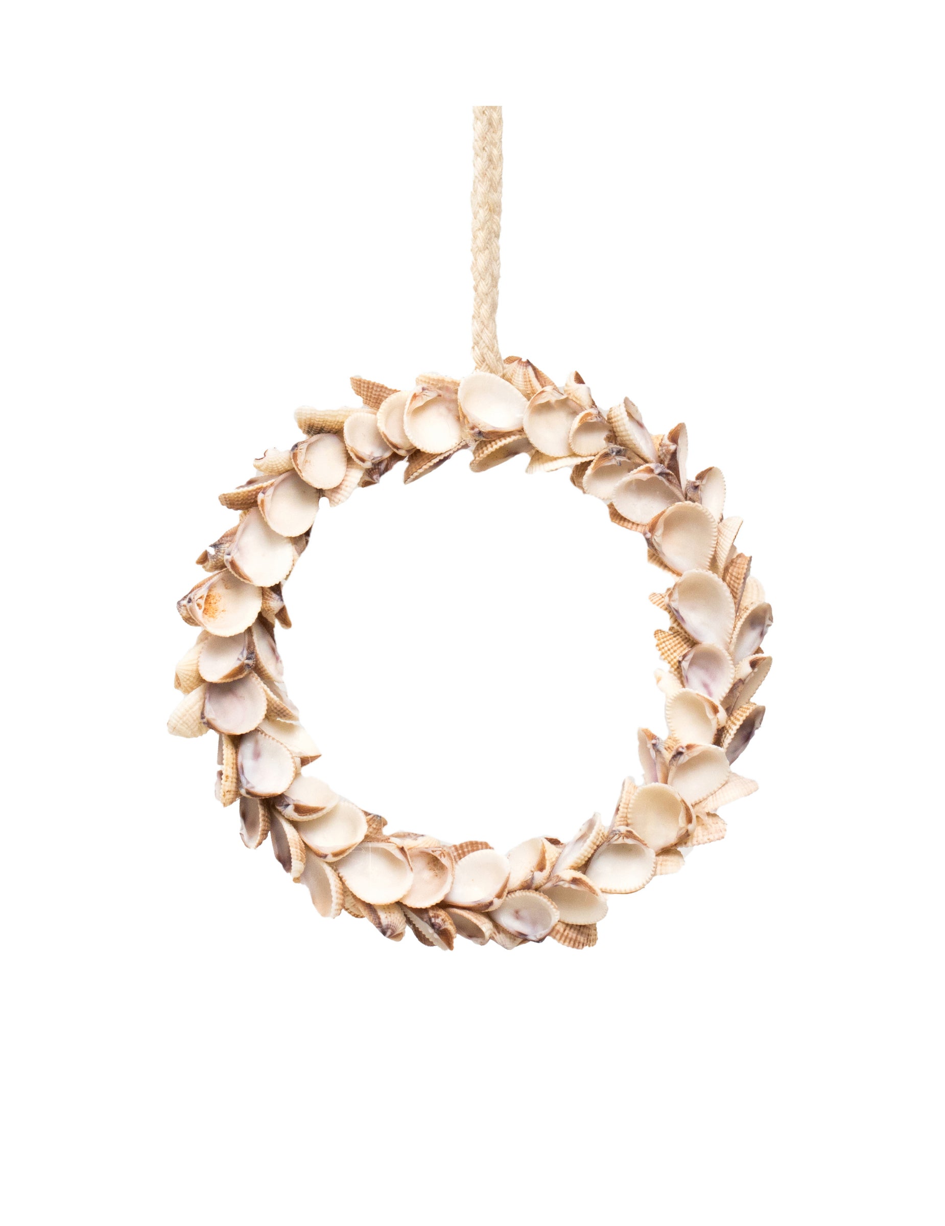 Apportez une touche naturelle à votre pièce avec cette suspension d'un diamètre de 12 cm environ. Conçue à partir d'une multitude de petits coquillages blancs assemblés en cercle, elle s'accroche aisément grâce à sa cordelette intégrée. Cette couronne de coquillages est l'accessoire parfait pour parfaire une décoration au thème marin ou exotique. Elle trouvera sa place lors d'un mariage élégant ou simplement pour sublimer votre décoration intérieure.