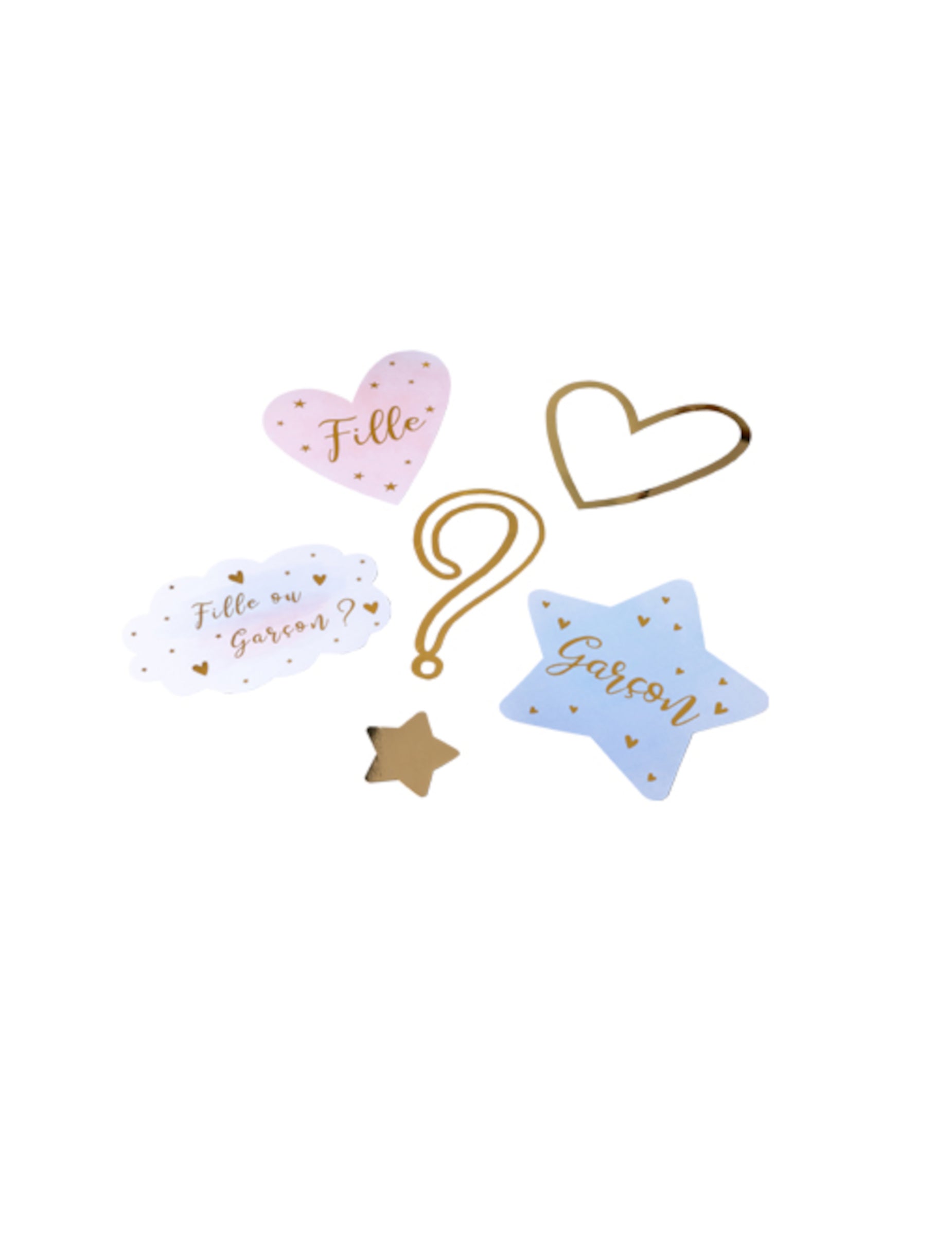 Sublimez votre buffet avec ce lot de 6 décorations de table gender reveal aux nuances pastel et dorées.