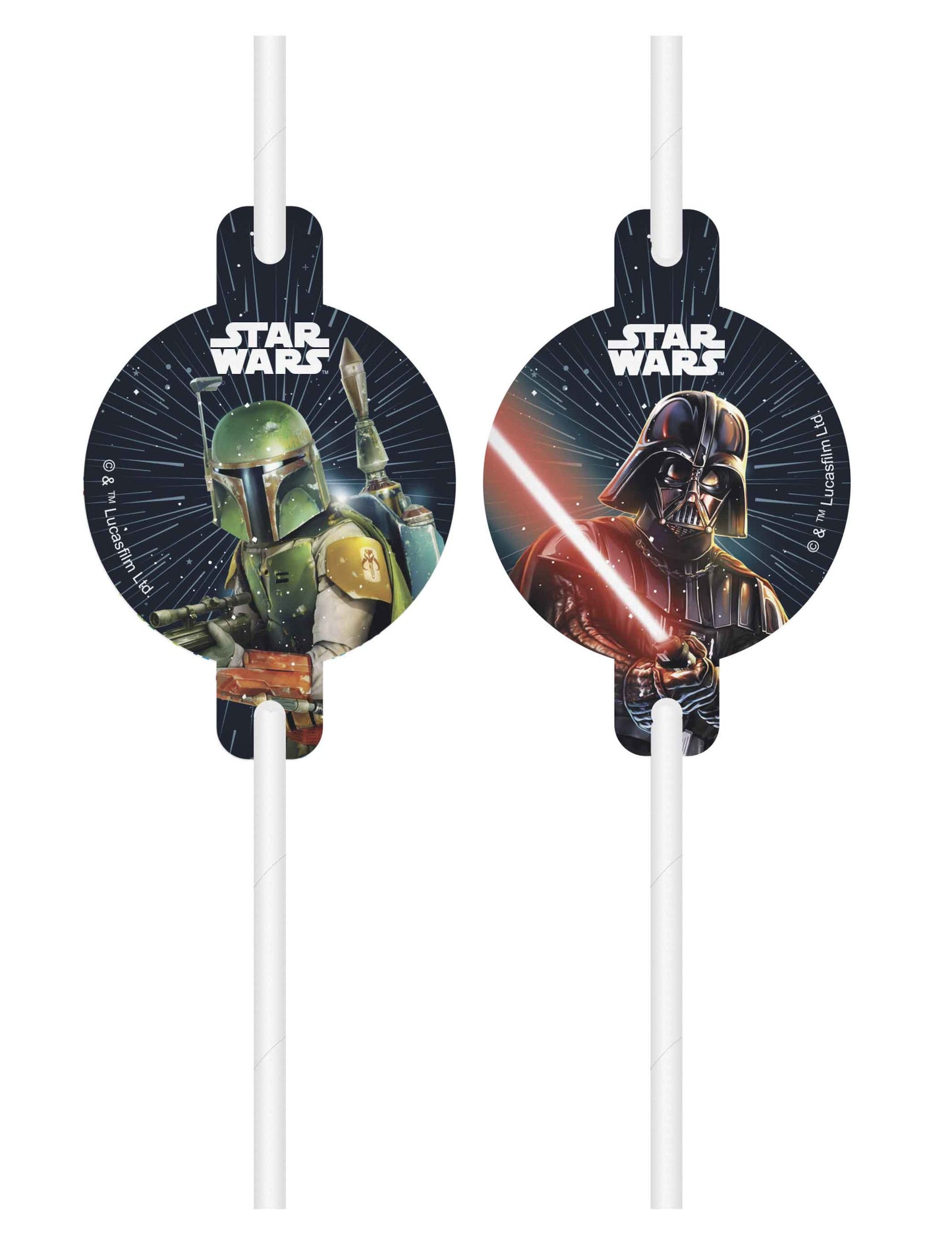 Тази партида се състои от 4 звезди на медальона на Медальон от Медальон от Медалс. В пластмасата те са украсени с картонени винетки, върху които са отпечатани герои от Междузвездни войни, като Боба Фет или тъмен Вейдър. Тези сламки ще бъдат идеални за завършване на декорацията на вашата маса по време на рожден ден!