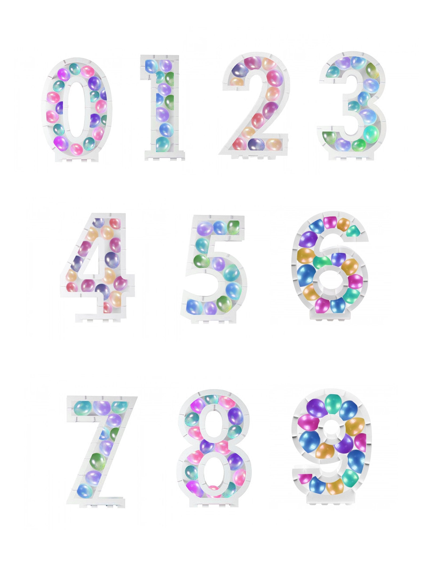 Le montage est simple et rapide, s'effectuant sans aucun outil ni colle. Il vous suffit de remplir cette structure chiffre avec des petits ballons en latex de 13 cm environ (vendus séparément) pour un rendu volumineux.