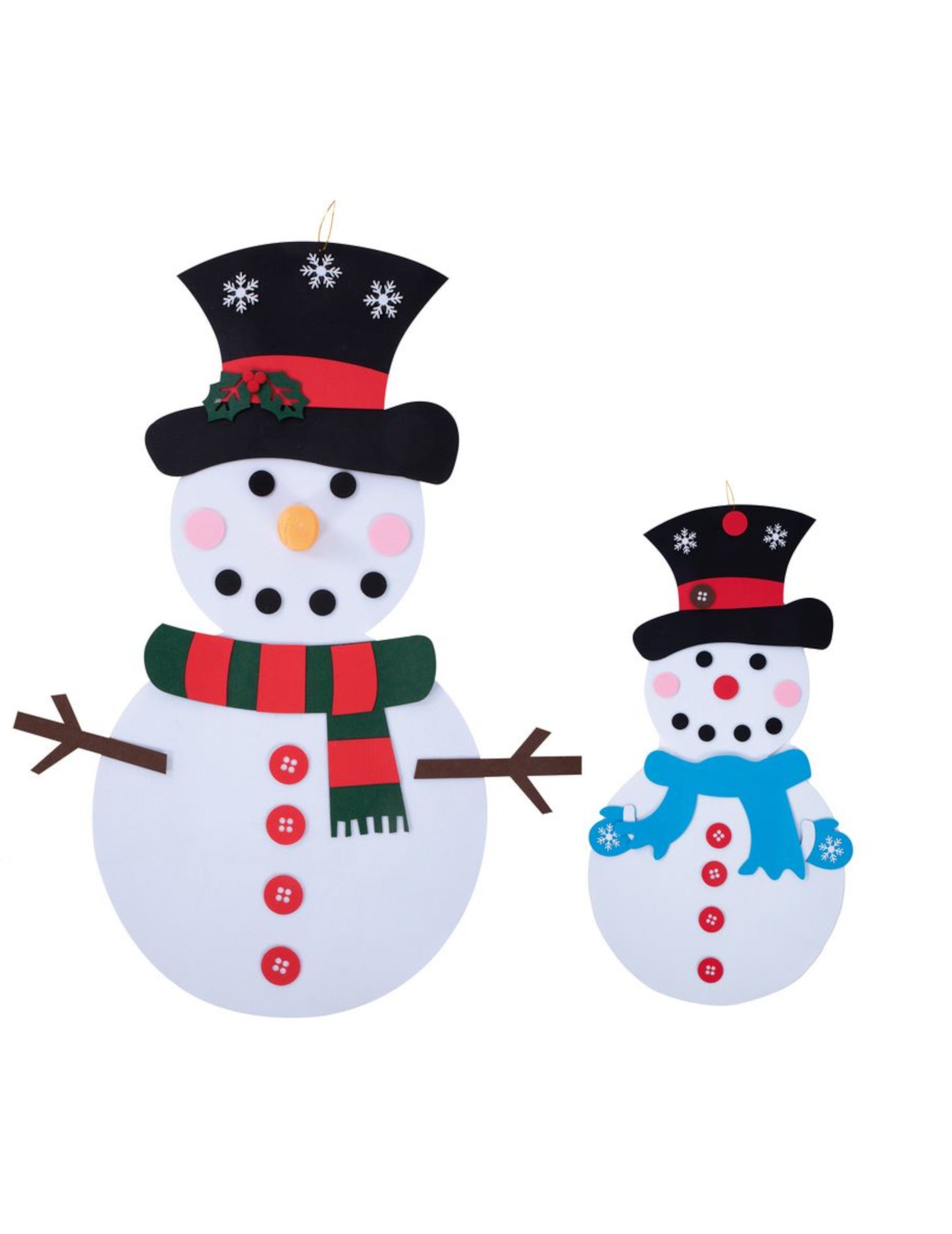 Това висяща декорация 50 x 98 cm приема формата на снежен човек Тази бяла филцова кукла се предлага с множество аксесоари, така че можете да я персонализирате по ваше желание: копчета, ръкавици, шапка, шалове, ръкавици и черти на лицето. Направи си сам снежен човек ще забавлява много децата по време на празненствата Коледа.