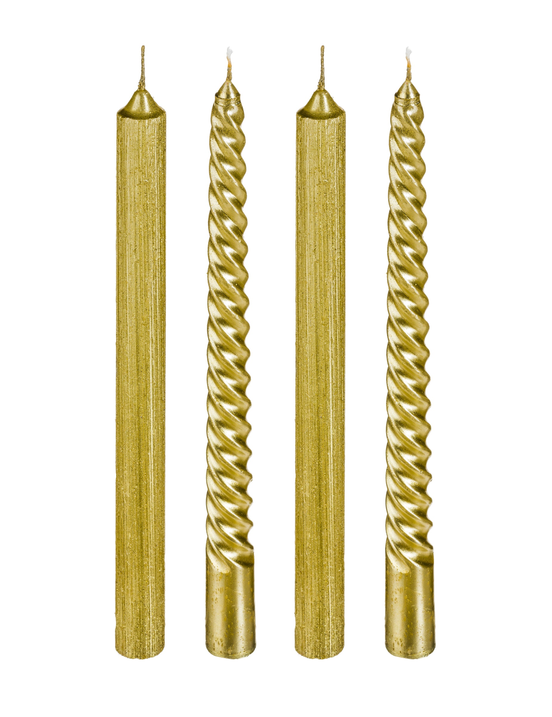 4 bougies chandelles or et paillettes 25 cm torsadées