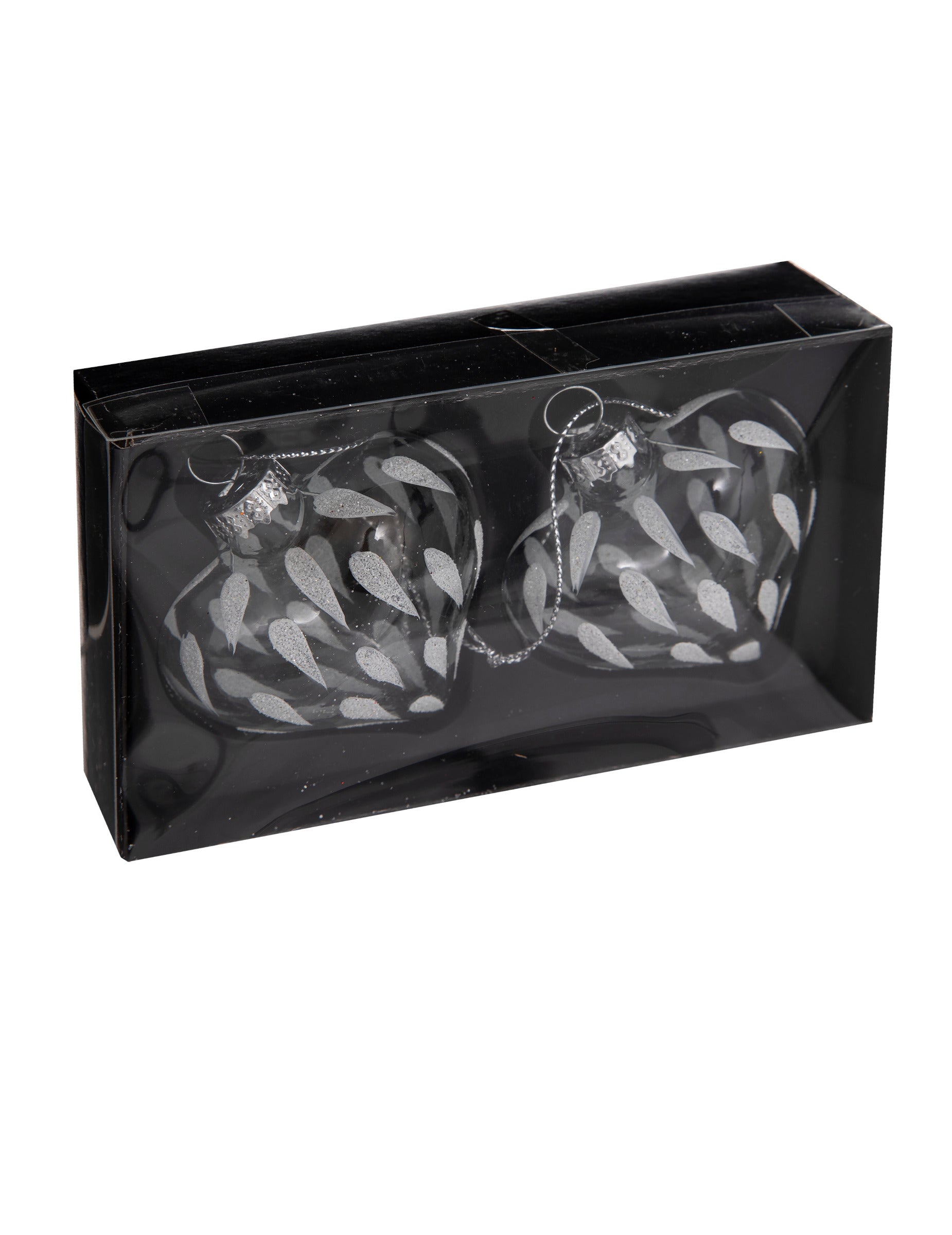 2 стъклени снежни топки с форма на сърце 6 cm да обеся