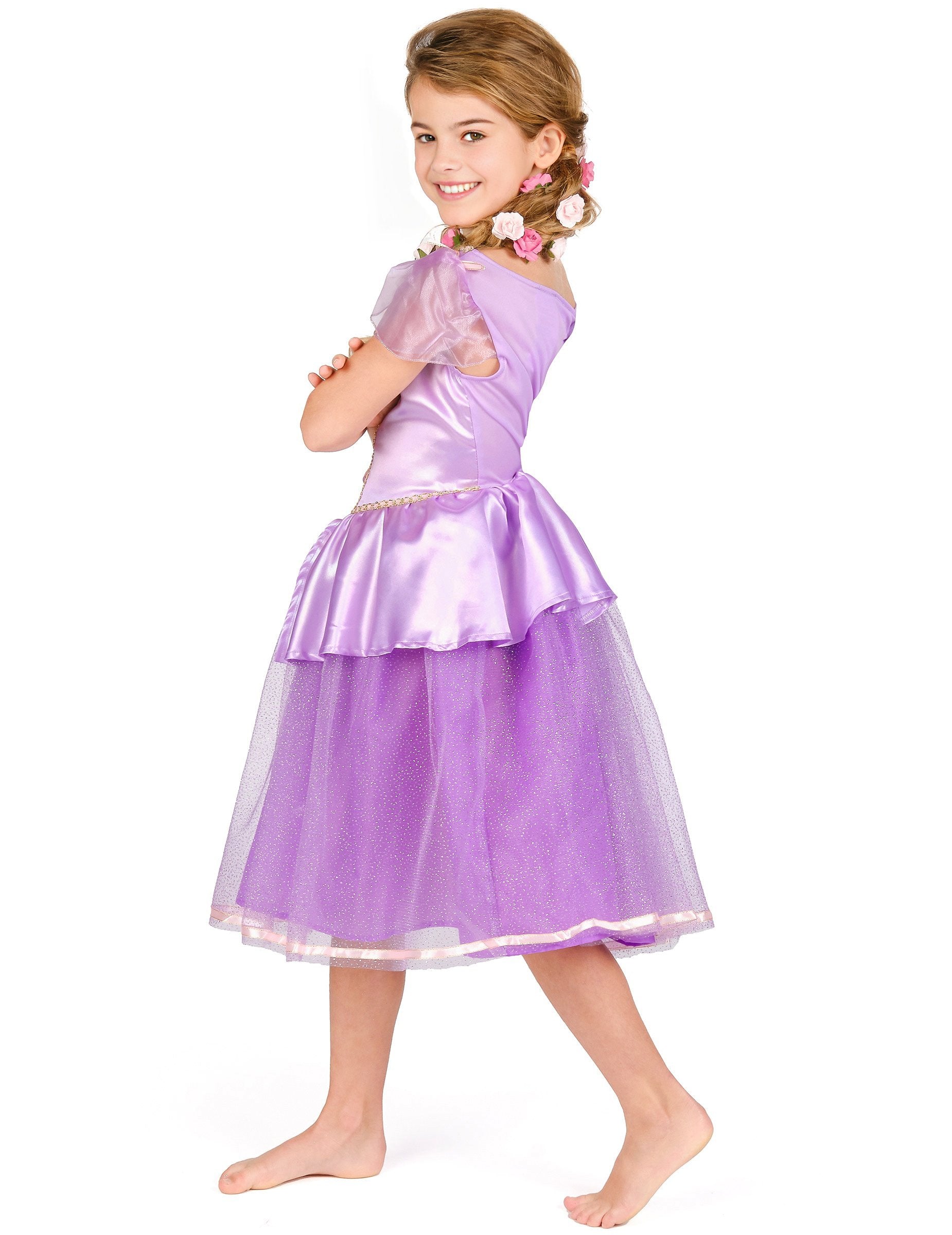 Тази Deluxe Rapunzel маскировка за момичета е под официален лиценз на Disney. Той включва рокля. Роклята на прикриването е изработена от лилава сатенена тъкан. Върхът на роклята е декориран от бял и златист боди, както и от портрета на известния Рапунцел. Размерът ще бъде еластичен. Ръкавите ще бъдат леко подпухнали, в лилав тюл. Дъното на роклята, подпухнало, е покрито с лилав тюл, включително множество блясъци. Този костюм на известната принцеса Рапунцел ще бъде идеален за карнавала или за рождения ден на вашето дете!