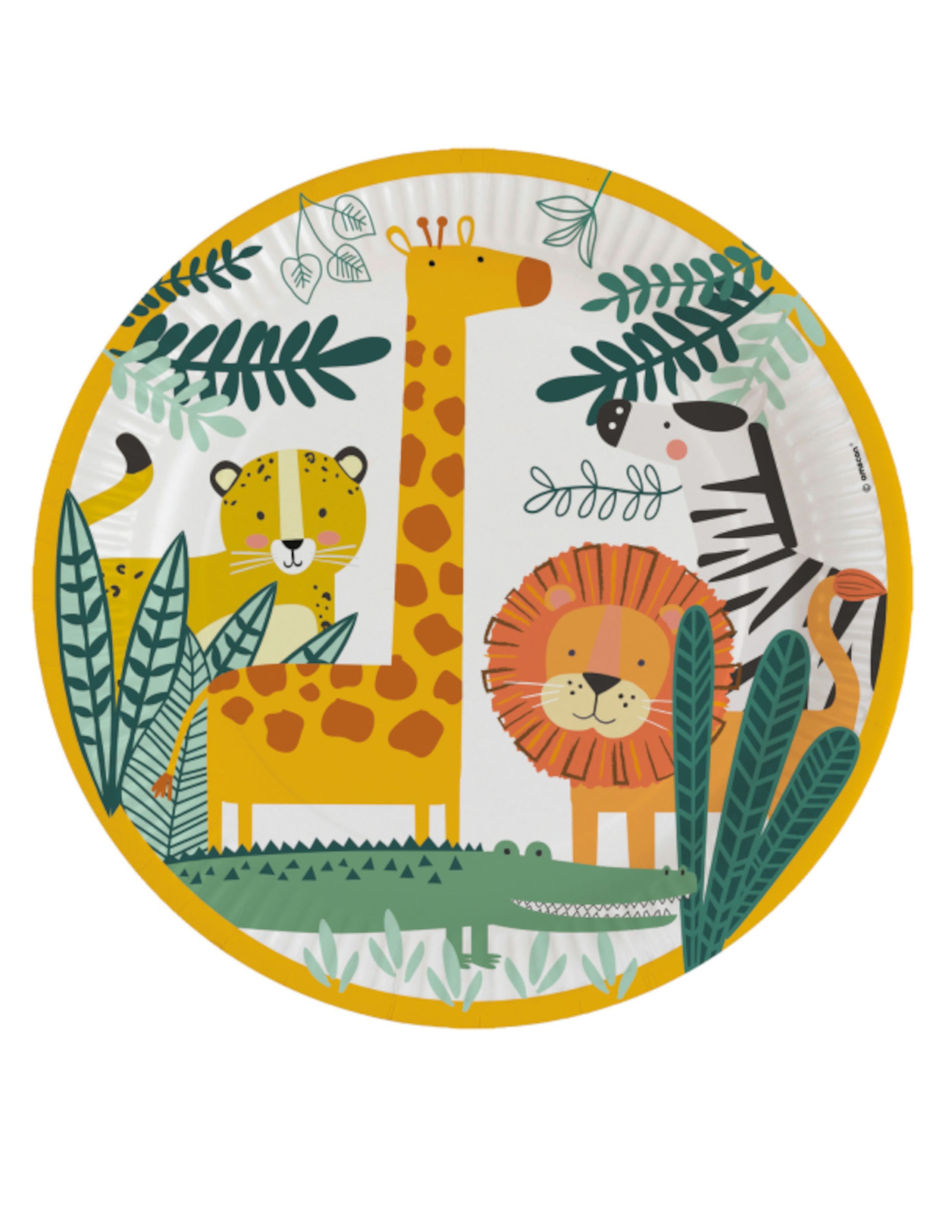 8 хартиени чинии за диво сафари 23 cm, животни от джунглата