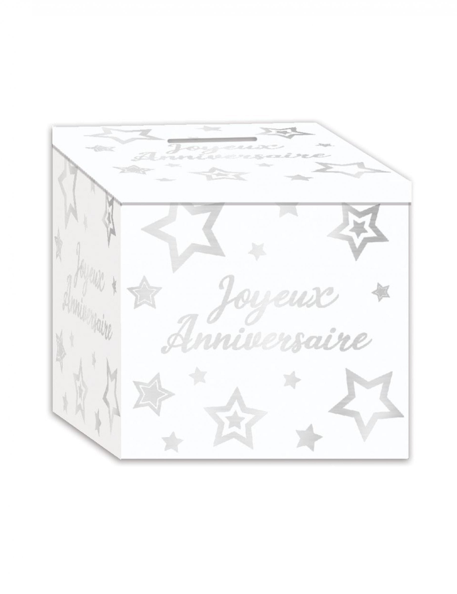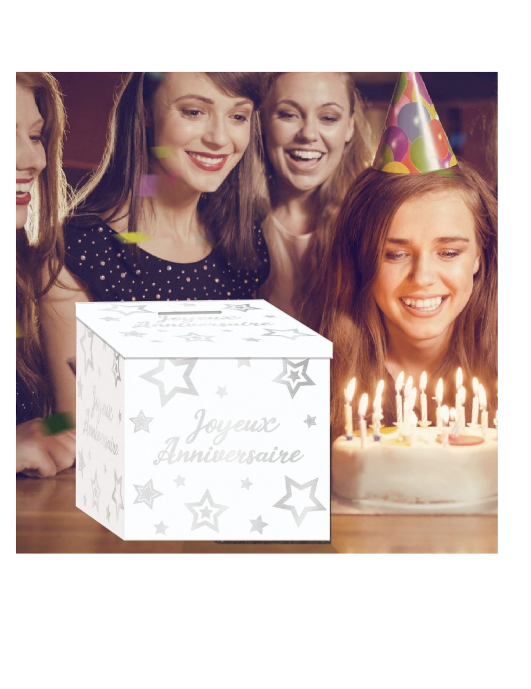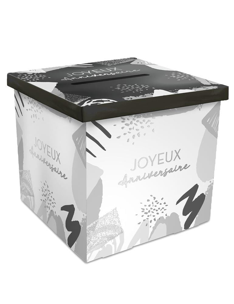 С измерването на около 20x20x20cm тази URN е в картонени въпроси. Той е бял на цвят като цяло. Той е декориран с множество сребърни и черни шарки. Той включва надписа "Честит рожден ден". Можете лесно да поставите вашата малка дума вътре благодарение на отвора, предвиден за тази цел. Попълнете декорацията на масата си по повод рожден ден с тези около вас!