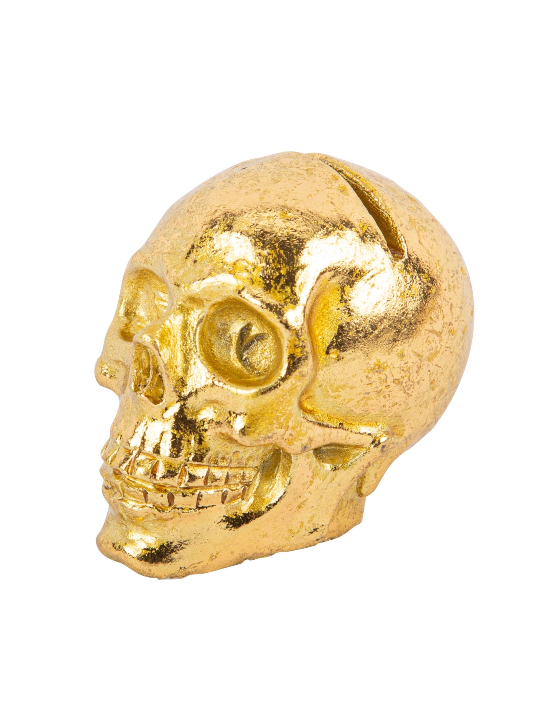 Тази партида се състои от 2 марки на марка с размери приблизително 4 cm x 3,5 cm. В смола те представляват череп от скелет. Те са златни на цвят и имат отвор отгоре, за да интегрират картона в името на вашия гост. Тази партида следи от черепа ще бъде идеална за вашата декорация на масата по случай вашата вечер на Хелоуин!