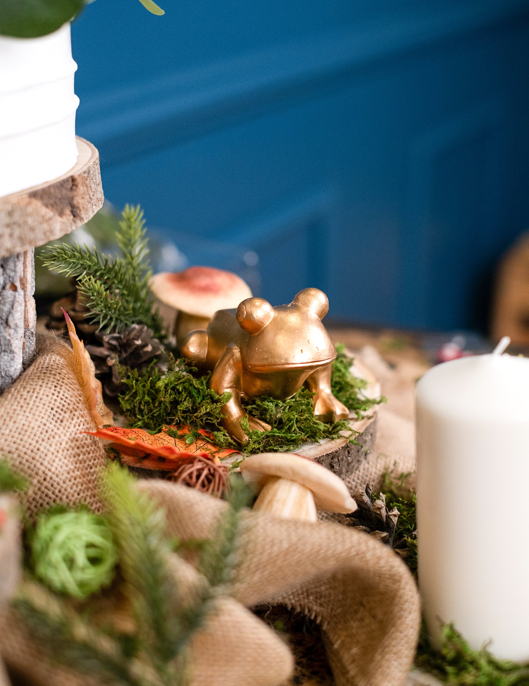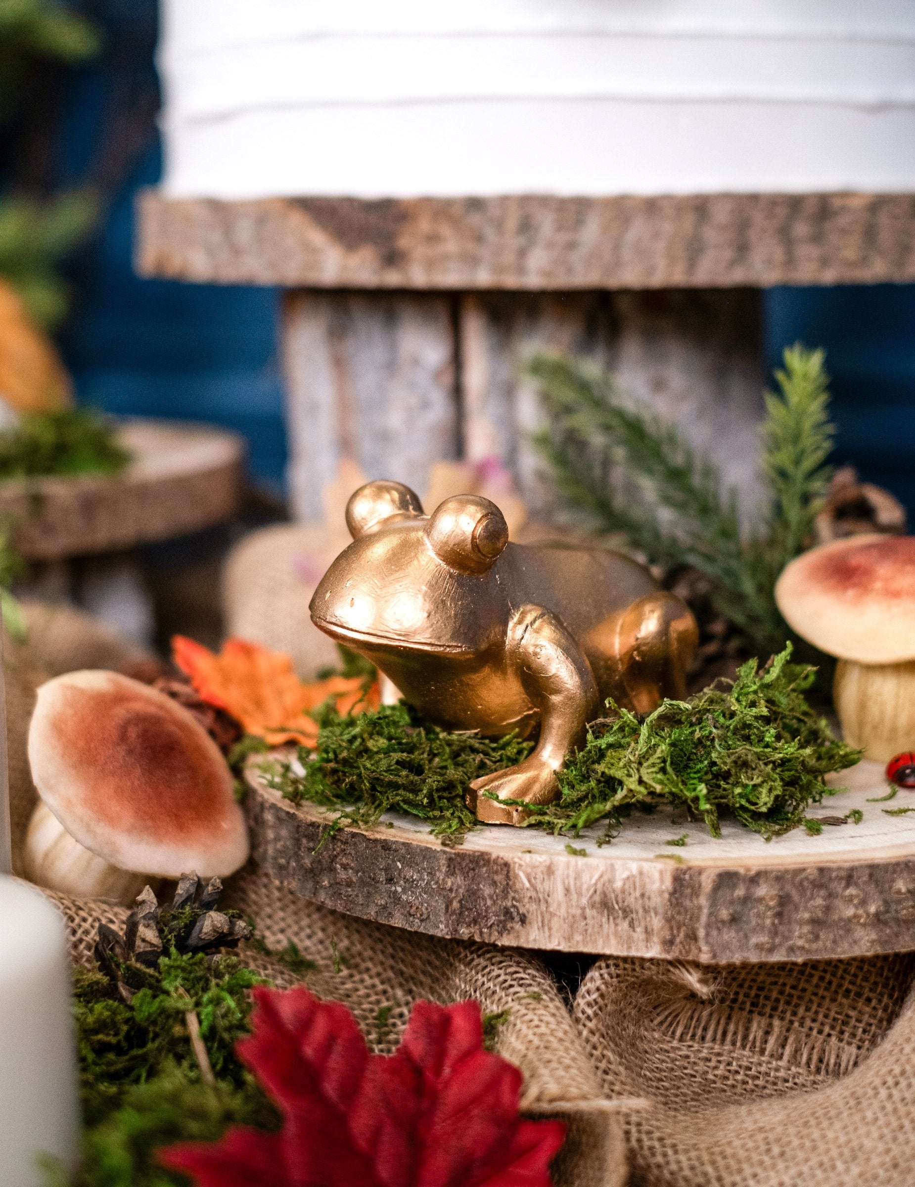 Тази жаба е в смола и е с размери приблизително 10 cm. Тази декорация е златиста цвят. Тази жаба ще бъде перфектна на вашата маса!
