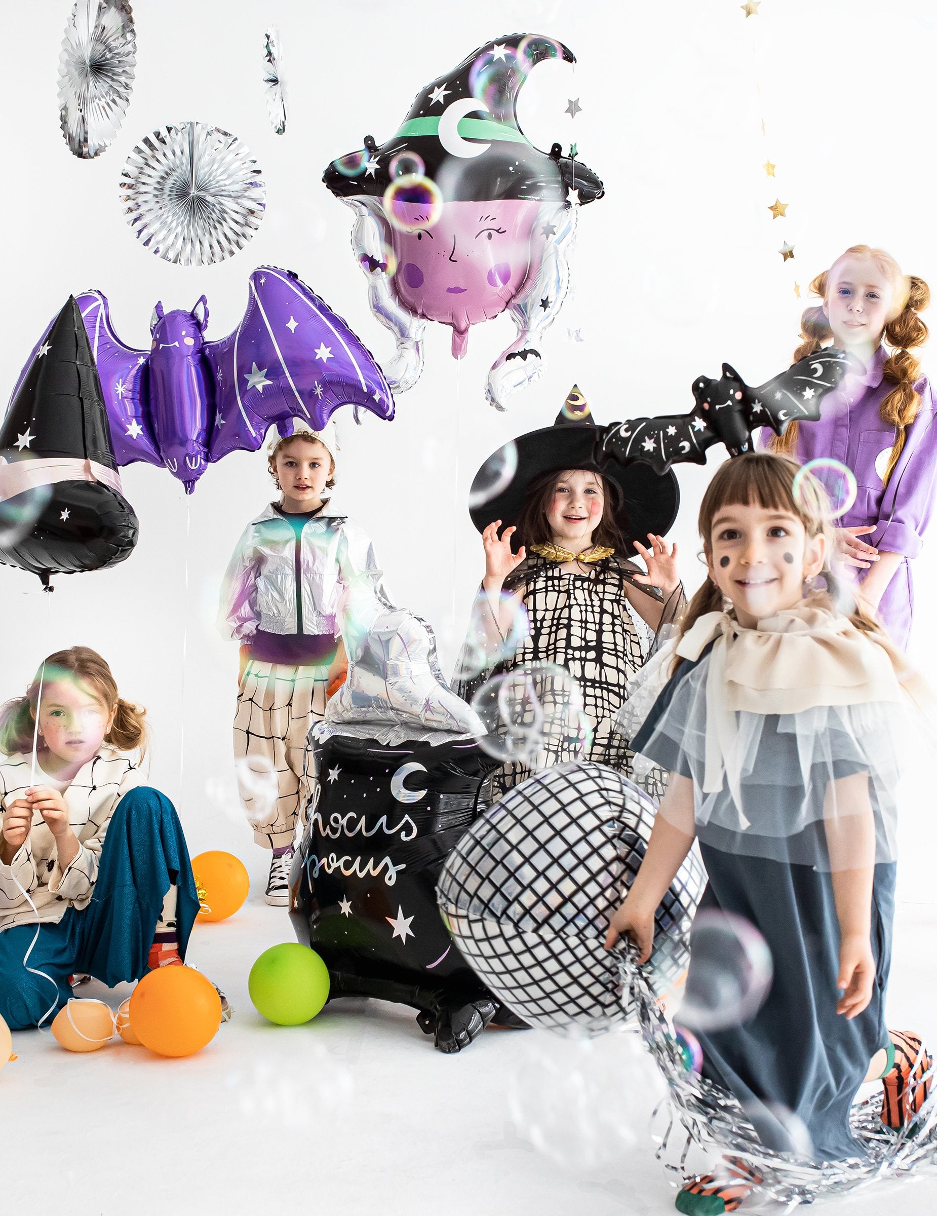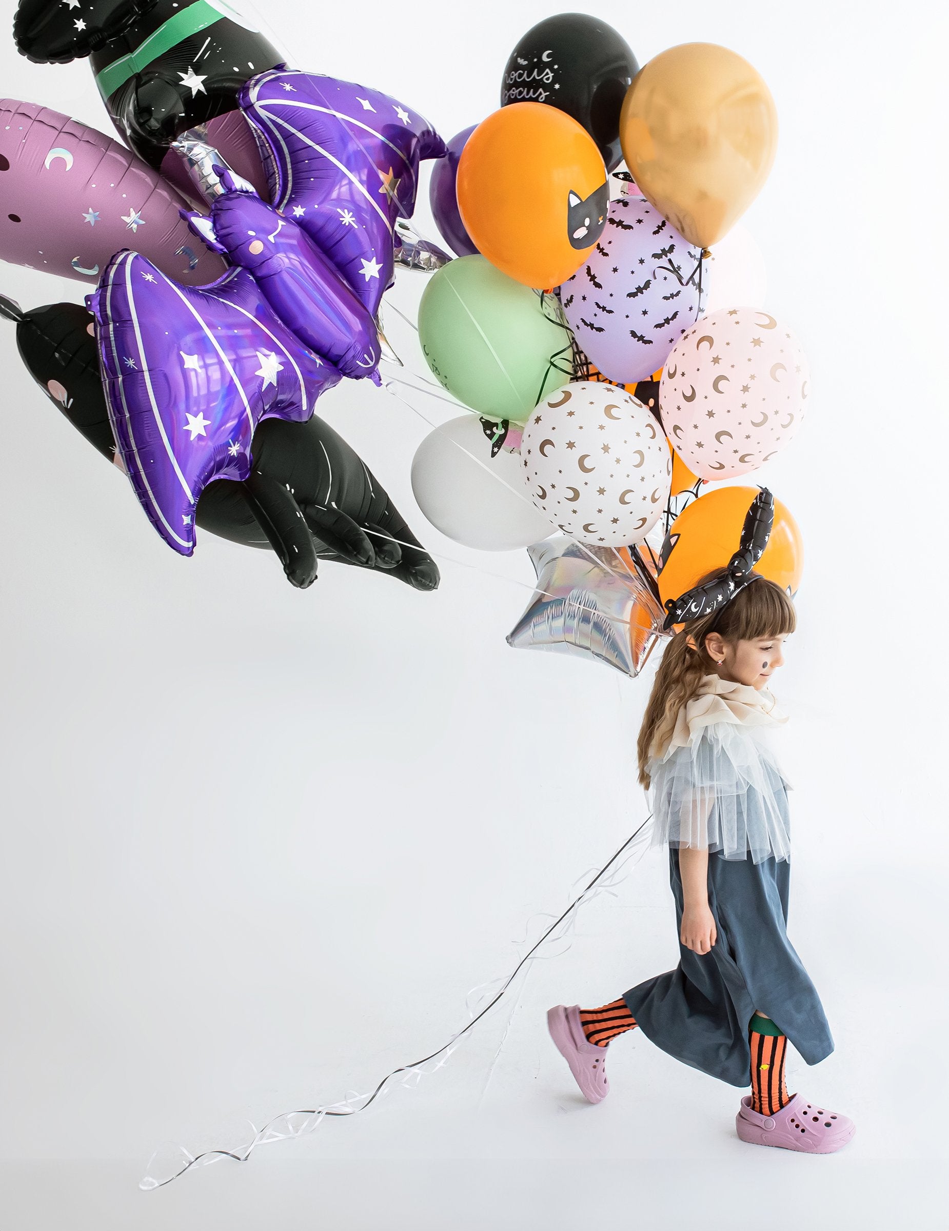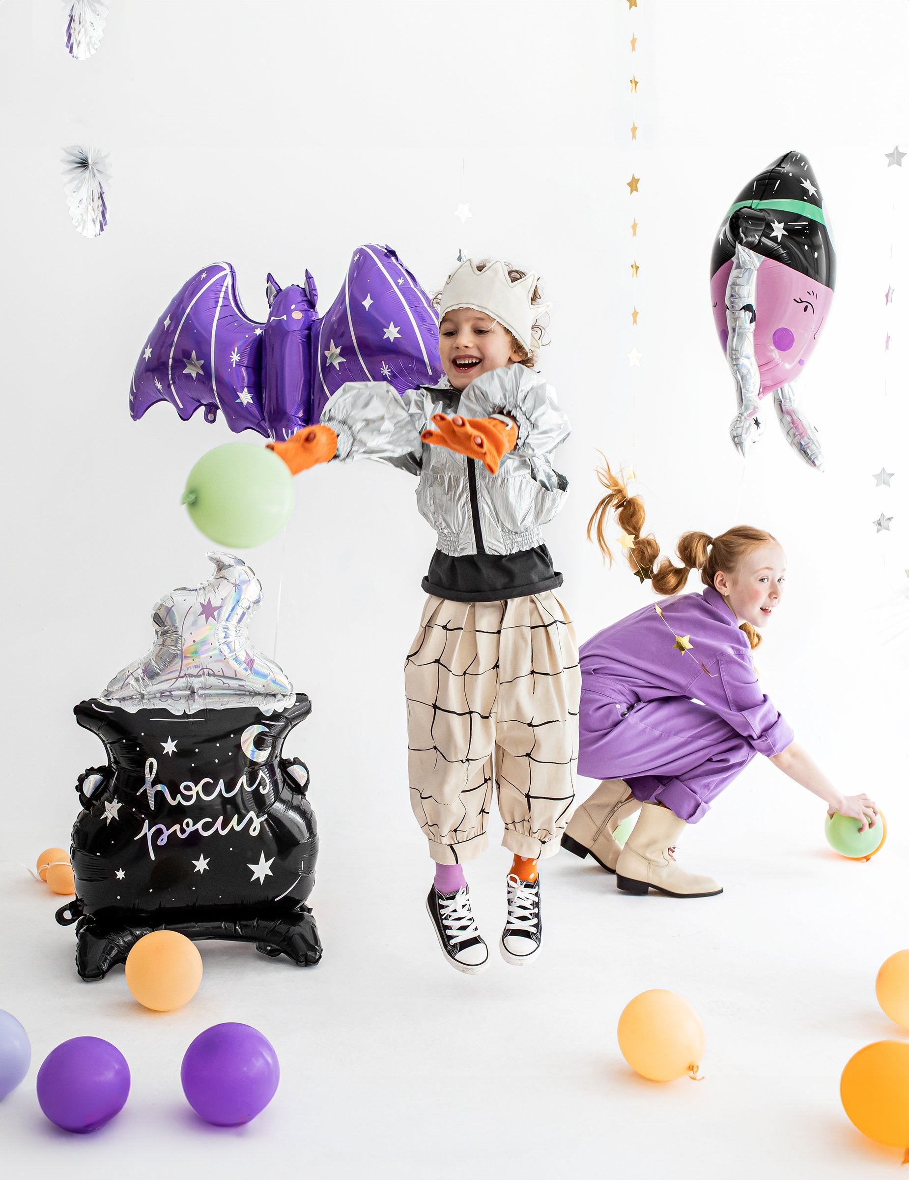 Този гигантски балон е изработен от алуминий и е с размери около 119 х 51 см. Той представлява очарователна лилава бухалка. Той е украсен със звезди с различни размери. Тази гигантска топка Batouris ще бъде усещане по време на вашето парти за Хелоуин!