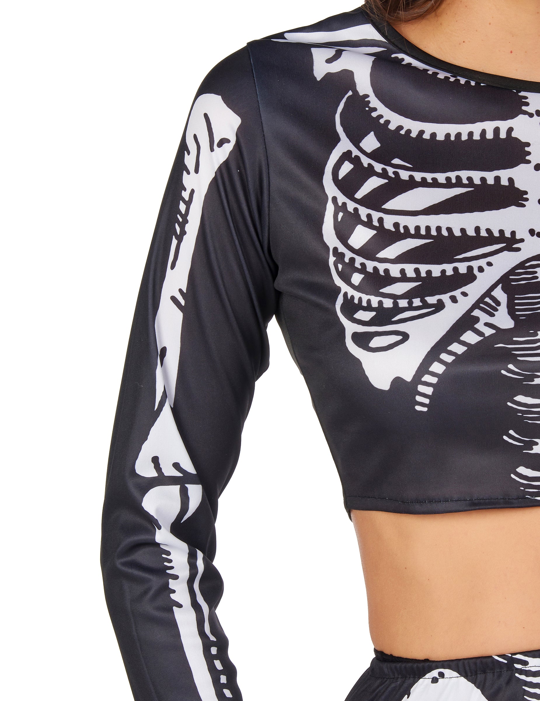 Цялото представлява скелетГорната част е къс топ с дълги черни ръкави.
