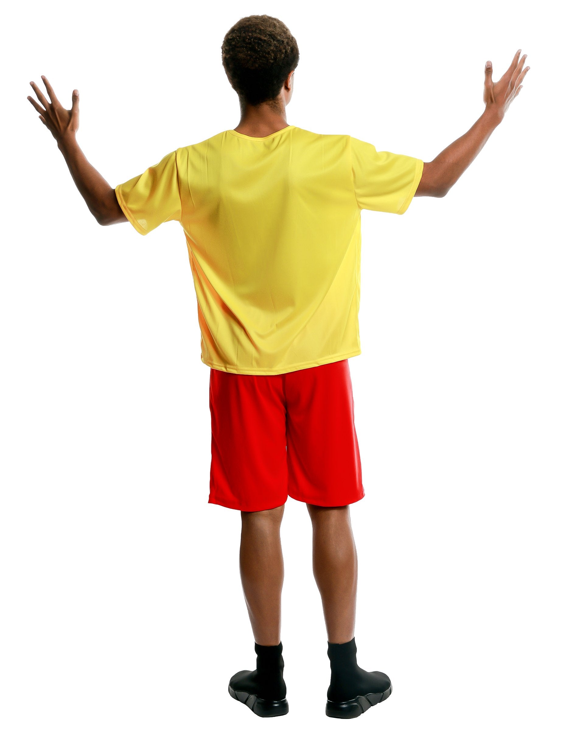 Тази спасителна маскировка в морето е за мъже. Състои се от тениска и къси панталони. Тениската е жълта и декорирана с герб „спасител на дежурство“, което означава спасител в експлоатация. Шортите са червени и със същия герб. Тази маскировка е перфектна идея за лятно парти или вечер, прикрита с приятели по темата хумор!