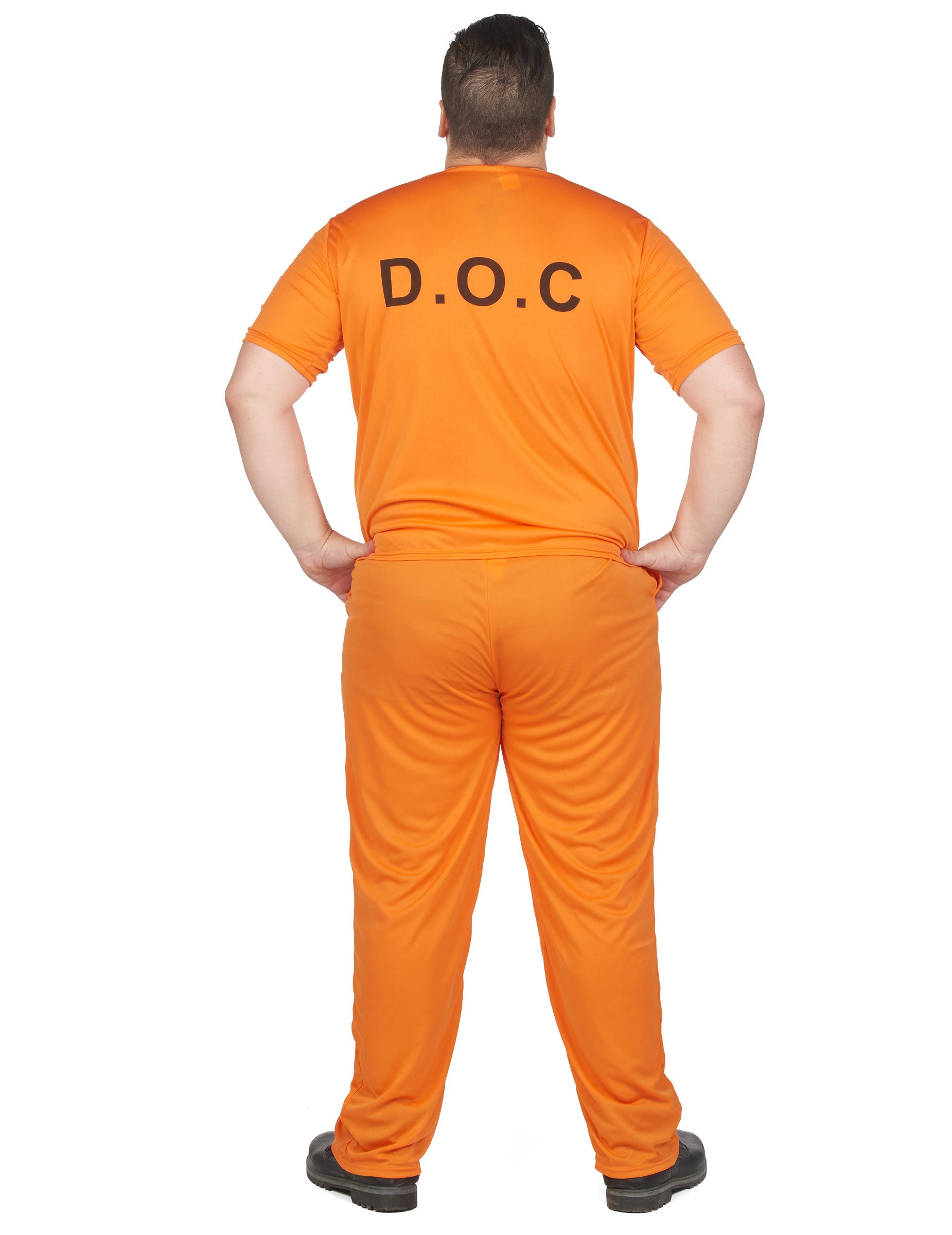 Този голям костюм на затворниците е за възрастни. Той е съставен от топ, панталони и значка. Горната част на костюма е с къси -оранжеви и оранжеви на цвят. Панталоните са съчетани с върха, също с оранжев цвят. За да завършите този костюм, се предлага пластмасова значка и директно закачена отгоре. Надписът "D.O.C" Значение "отдел за корекция" се намира на гърба на върха. Този костюм на затворника ще бъде идеален за усъвършенстване на вашия тоалет по време на прикрита вечер като Хелоуин или за Карнавал!