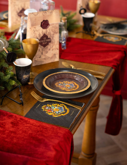 Тази партида включва 20 кърпи под официален лиценз за Хари Потър. На хартия те са отговорни за около 33x33 см. На черен фон всяка кърпа е украсена от известния мотив на училището Хогуортс, подчертавайки козините на всяко училище, тоест това на къщата на Грифиндор, на Редараигът, от Къщата на Слидерин, както и от The Къща Pouffle. Попълнете декорацията си по темата на магьосника по повод рожден ден благодарение на тази великолепна партида!