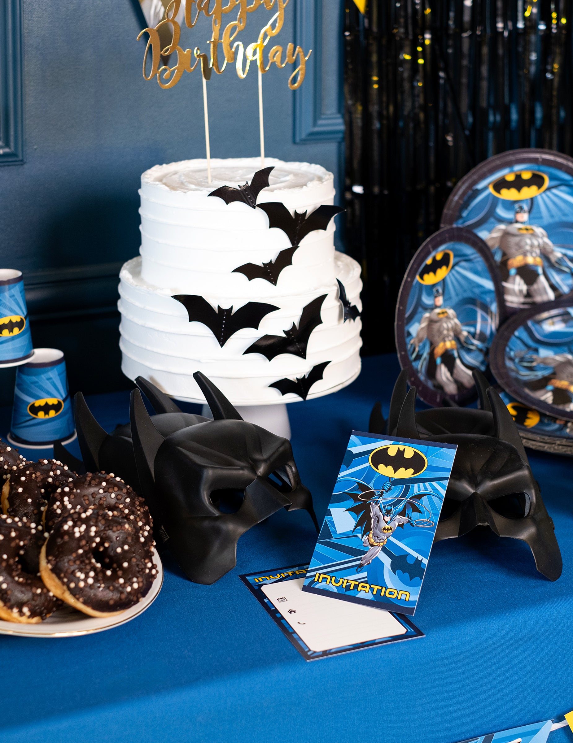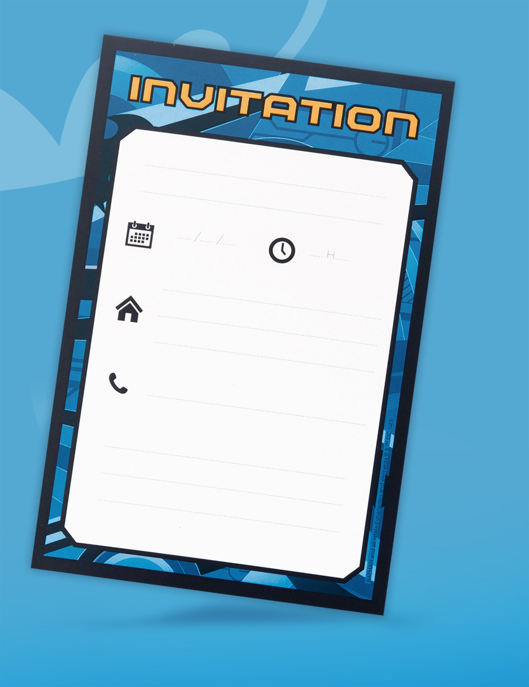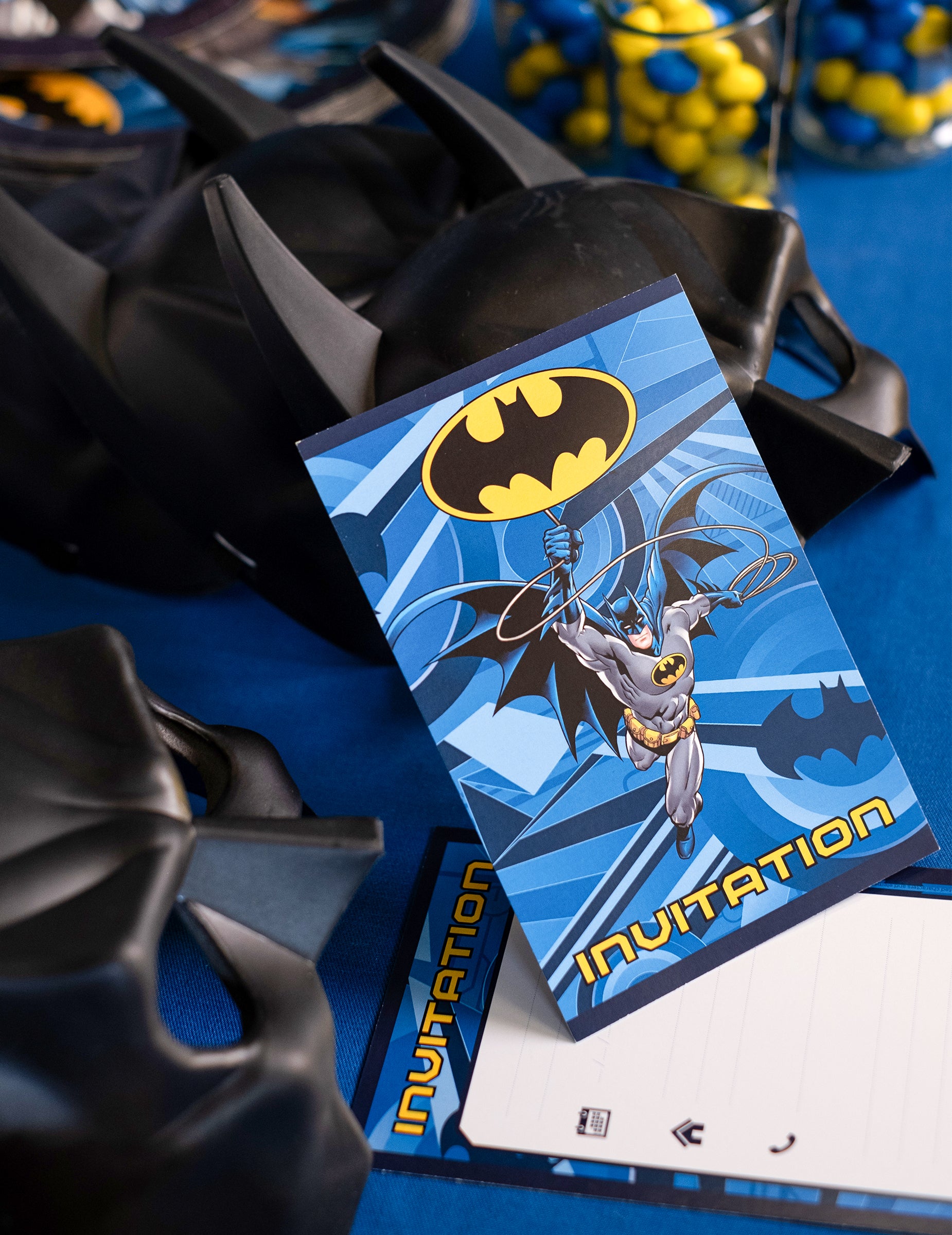 Съгласно официален лиценз за Батман този лот е съставен от осем покани и пликове. Картите са размери 10 x 16 cm. Тези карти за покани ще позволят на вашето дете да покани приятелите му за закуска за рожден ден или за всяко друго събитие по темата на Батман!