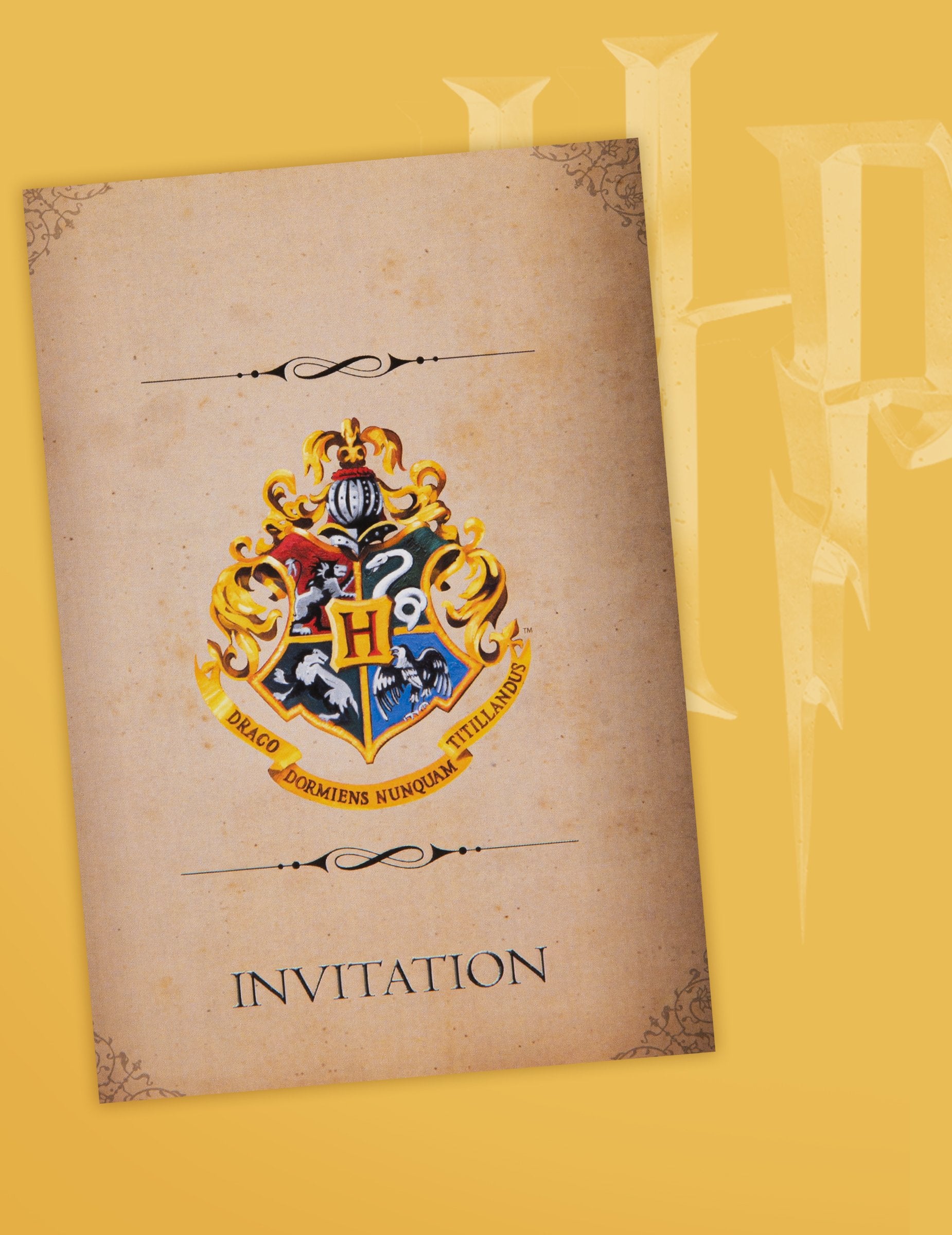 Под официален лиценз за Хари Потър този лот включва осем карти за покани. Доставя се с пликове. В картон те са размери 10 х 16 см. Те включват логото на Hogwarts на бежов фон. Тези карти за покани ще позволят на вашето дете да покани всички негови приятели за следващото му парти!