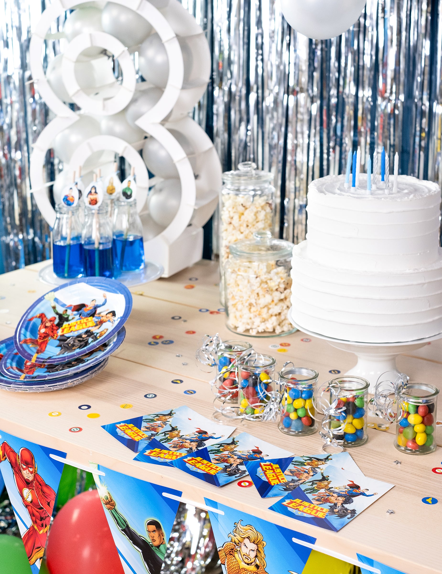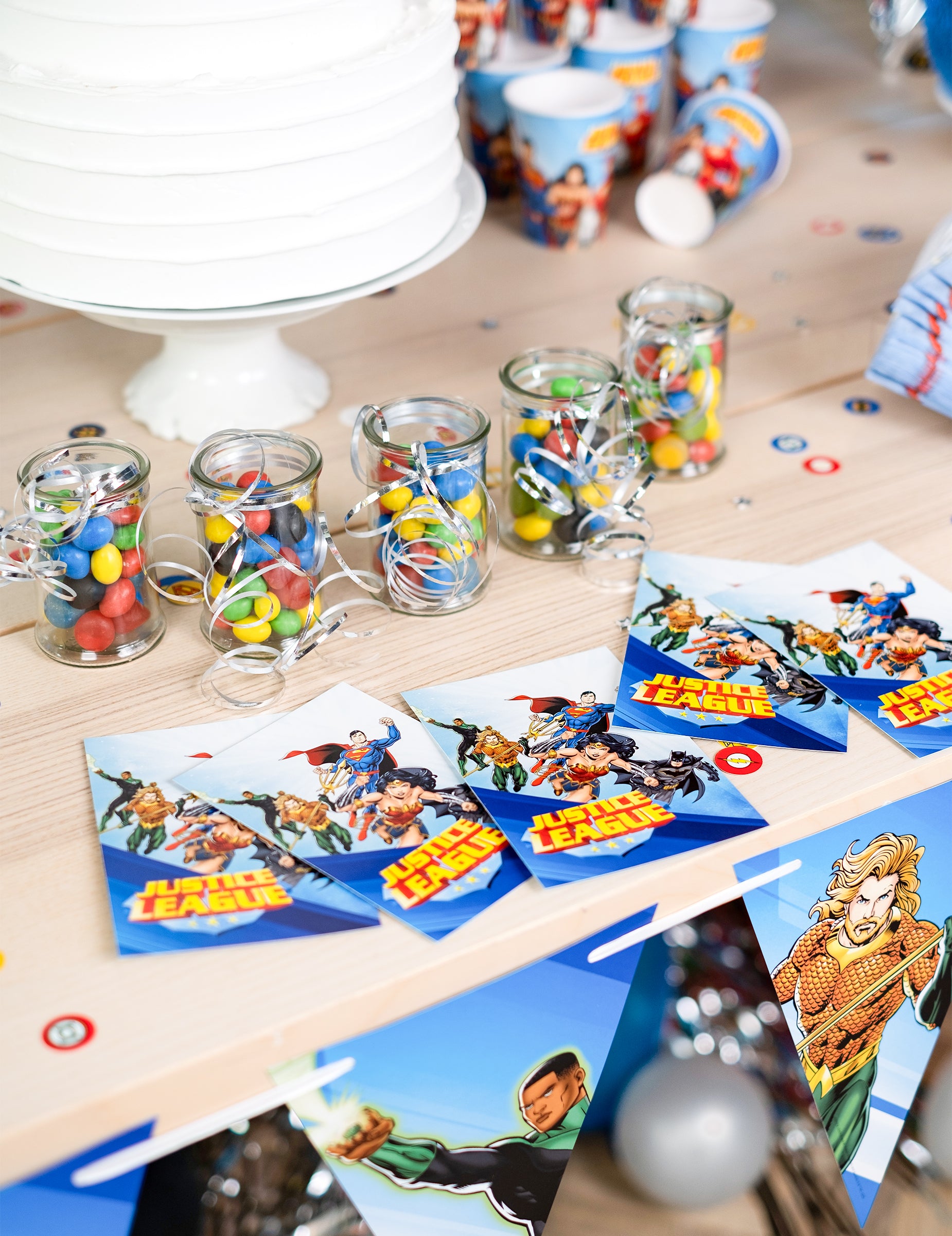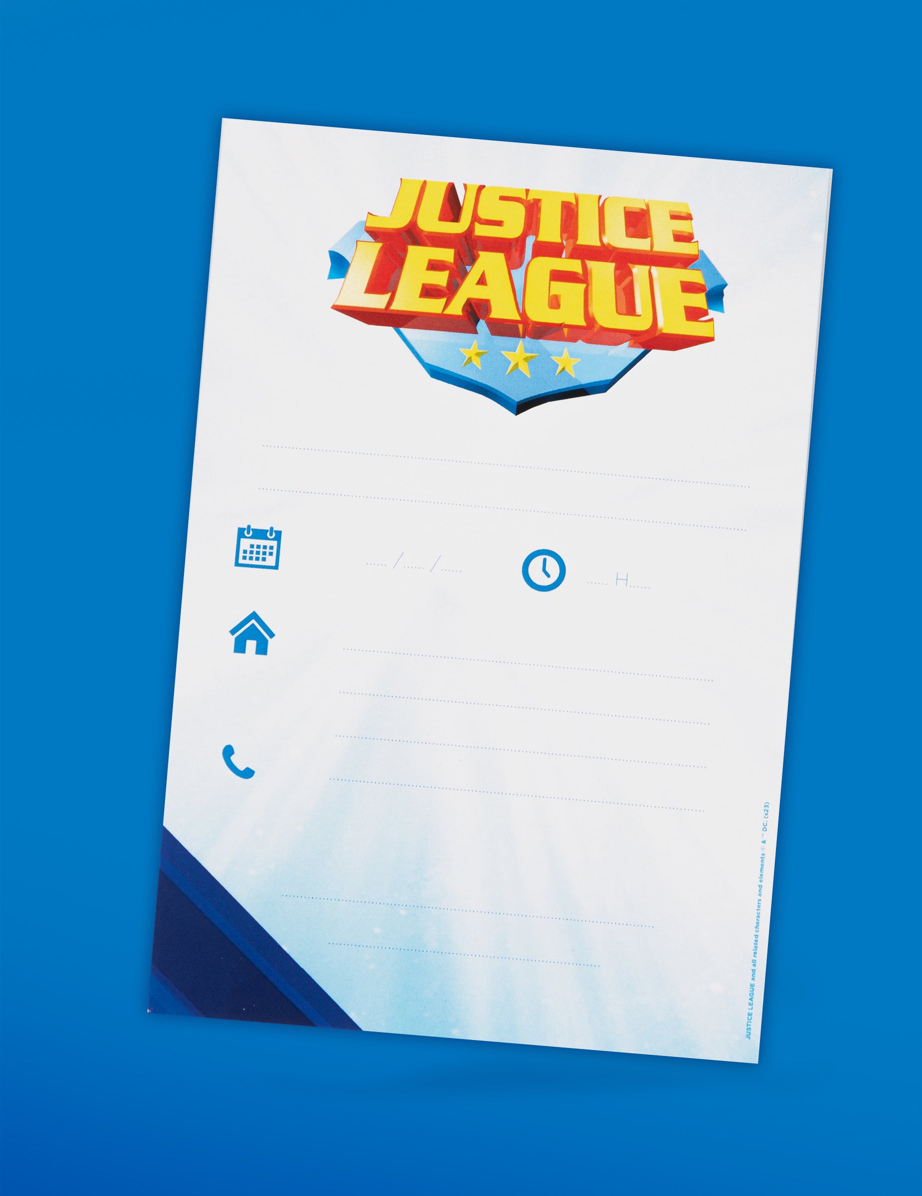 Съгласно официалната лицензионна лига на правосъдието, този лот е съставен от осем покани с пликове. В картон картите са с размери 10 х 16 cm. Тези карти за покани ще позволят на вашето дете да покани приятелите му за закуска за рожден ден или за всяко друго празнично събитие на темата на Лигата на справедливостта!