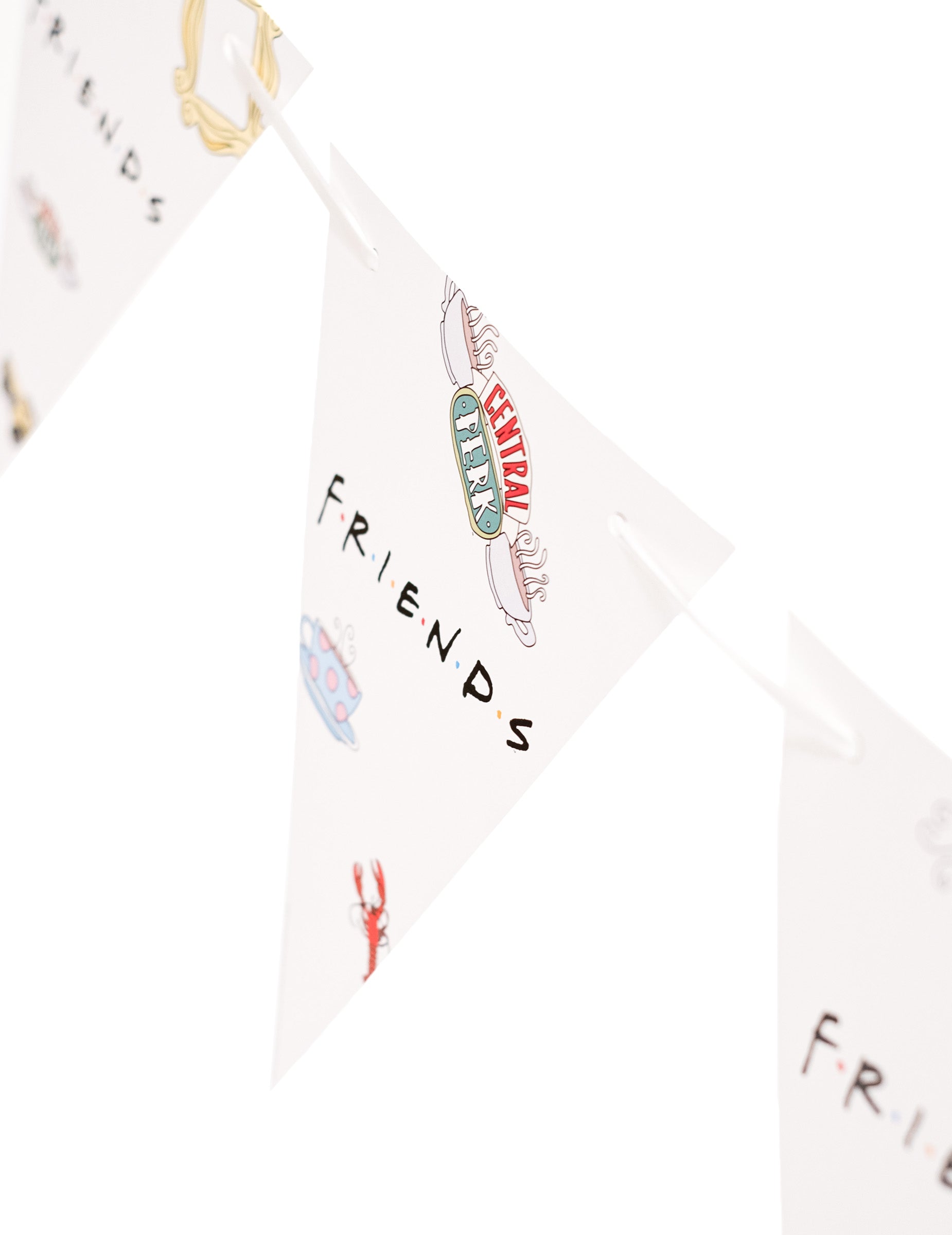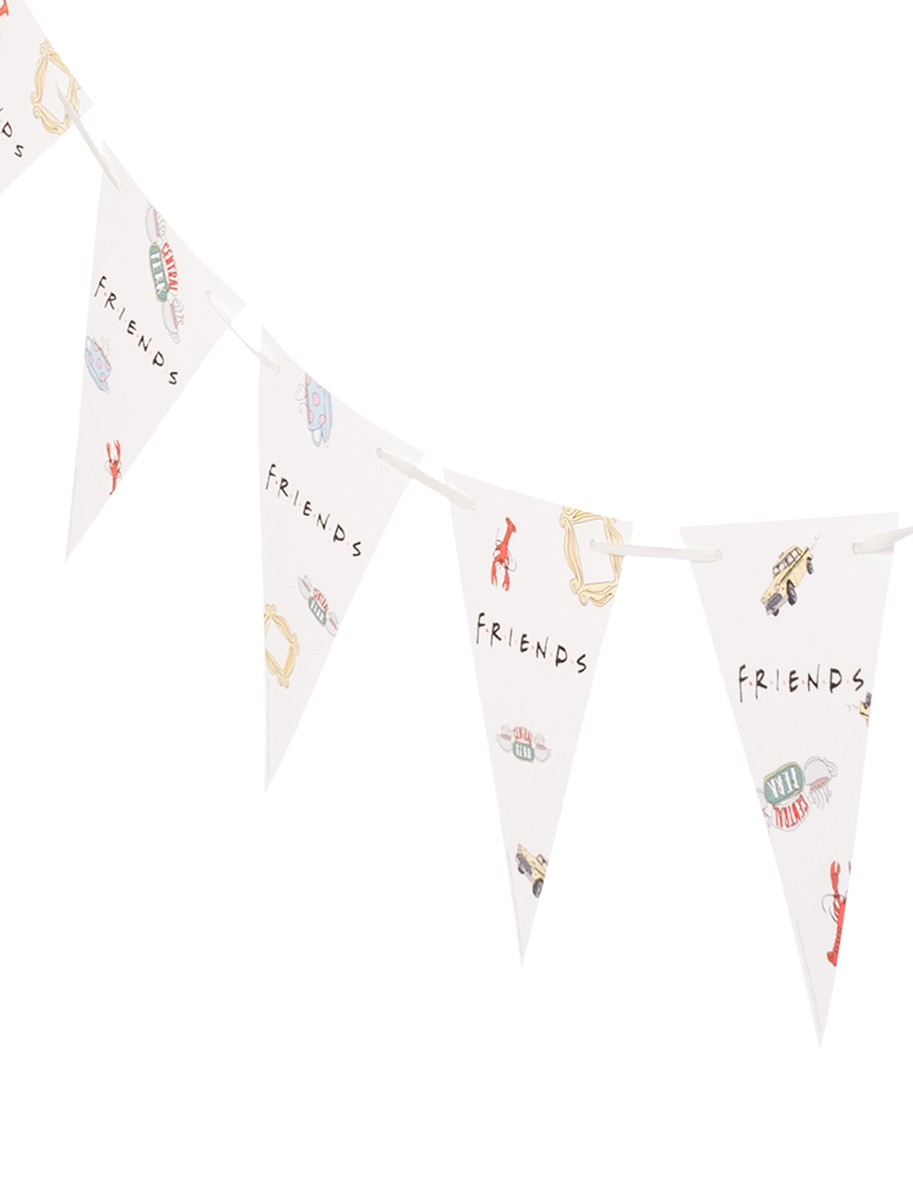Тази гарландска гарландка е под официален лиценз за приятели. Той е с дължина 2 м и е изработен от картон. Пеналните представляват елементи във връзка с поредицата. Това ще ви позволи да попълните декорацията на стаята си за вашето събитие по темата за приятели!