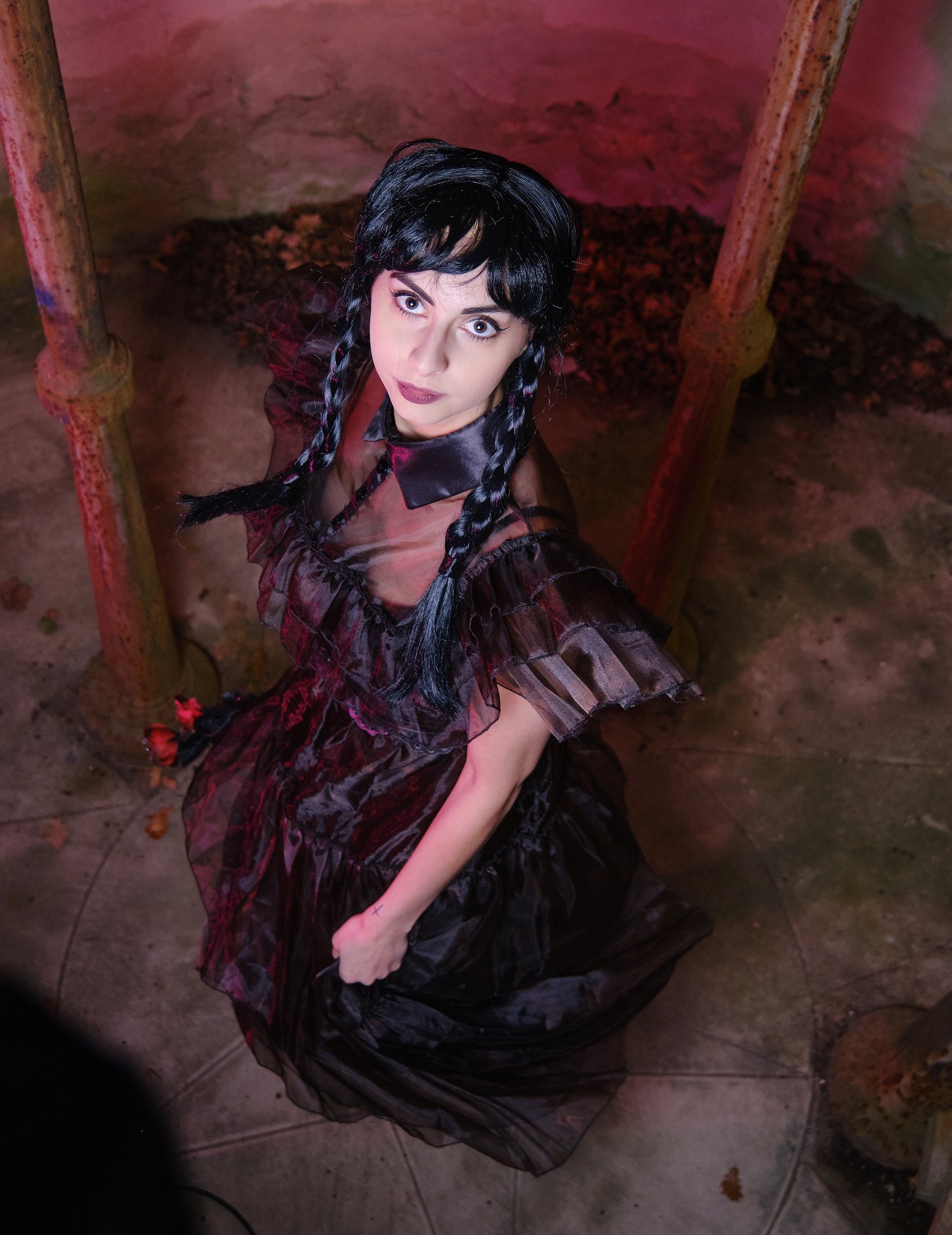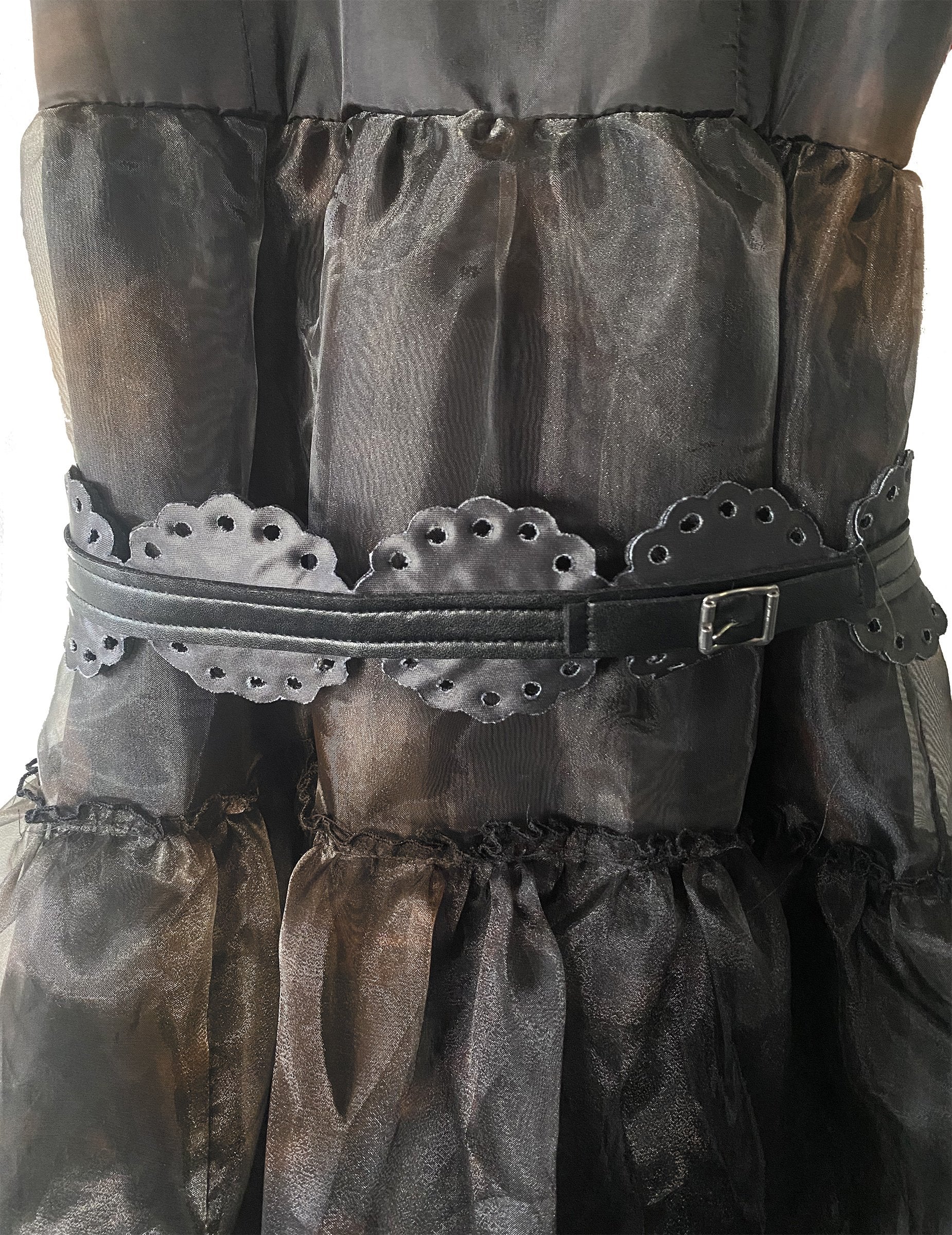 Тази рокля de dress mecredi addams за жени е под официален лиценз в сряда Адамс. Той представлява емблематичната танцова сцена по време на бала на известната поредица от Netflix. Той е съставен от дълга рокля и колан. Дългата сатенена черна рокля има много подробности. Той има черна яка, която отстъпва на панел за шевове, подпухнал тюл на раменете и ръбовете, които образуват дължина на дължината в краката. Той има устойчиви медни ореоли във връзка с оригиналната рокля на поредицата. Коланът е черен с дупки. Изберете за сплетена прическа, за да завършите това облекло. Покажете най -добрата си танцова стъпка по време на следващата си прикрита вечер или по време на Хелоуин, като носите този костюм на Addams сряда!
