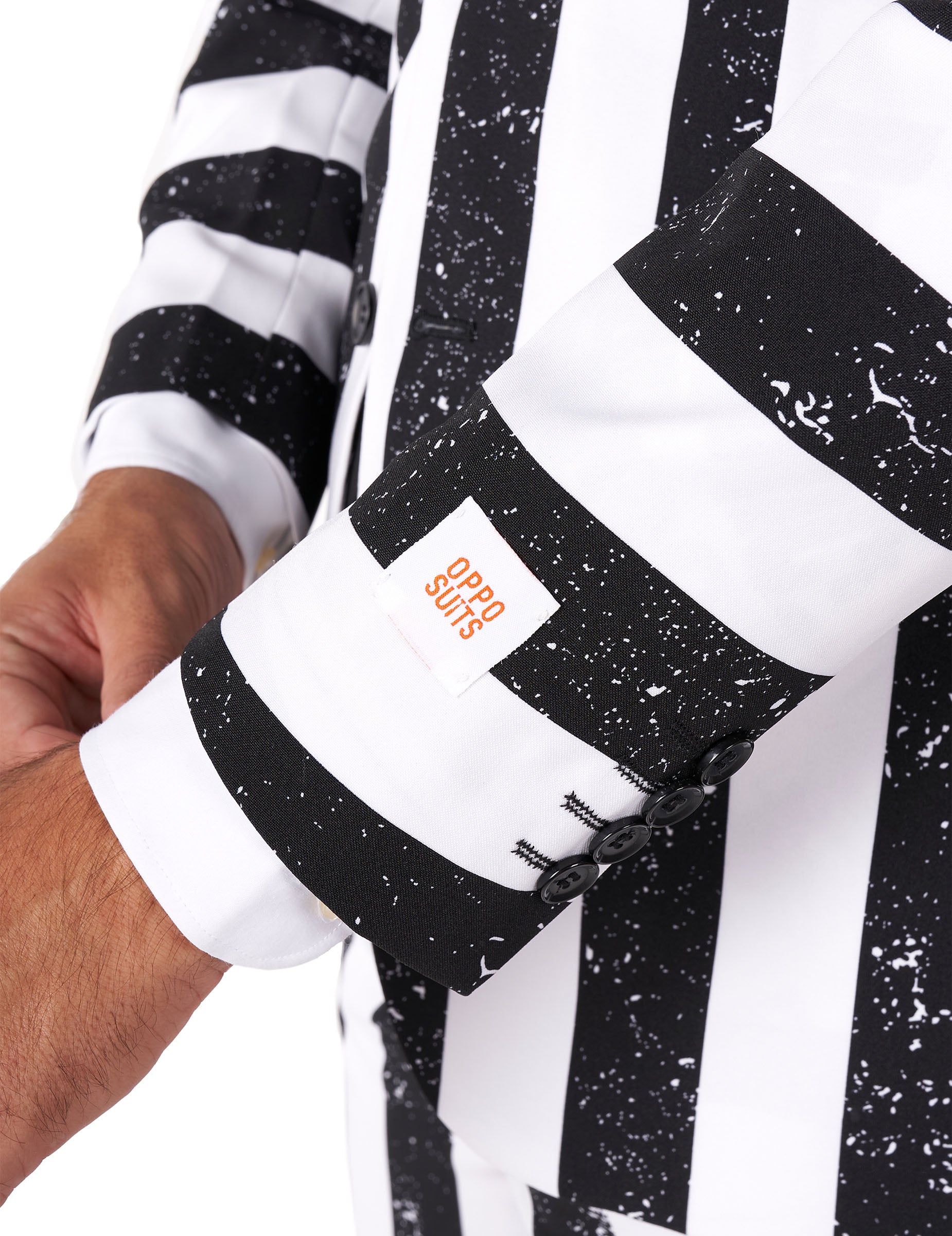 Вдъхновен от филма от 80-те години, този костюм представя облеклото на известния Beetlejuice™. Сакото и панталонът са украсени с вертикални черно-бели райета, докато вратовръзката е в черен цвят.