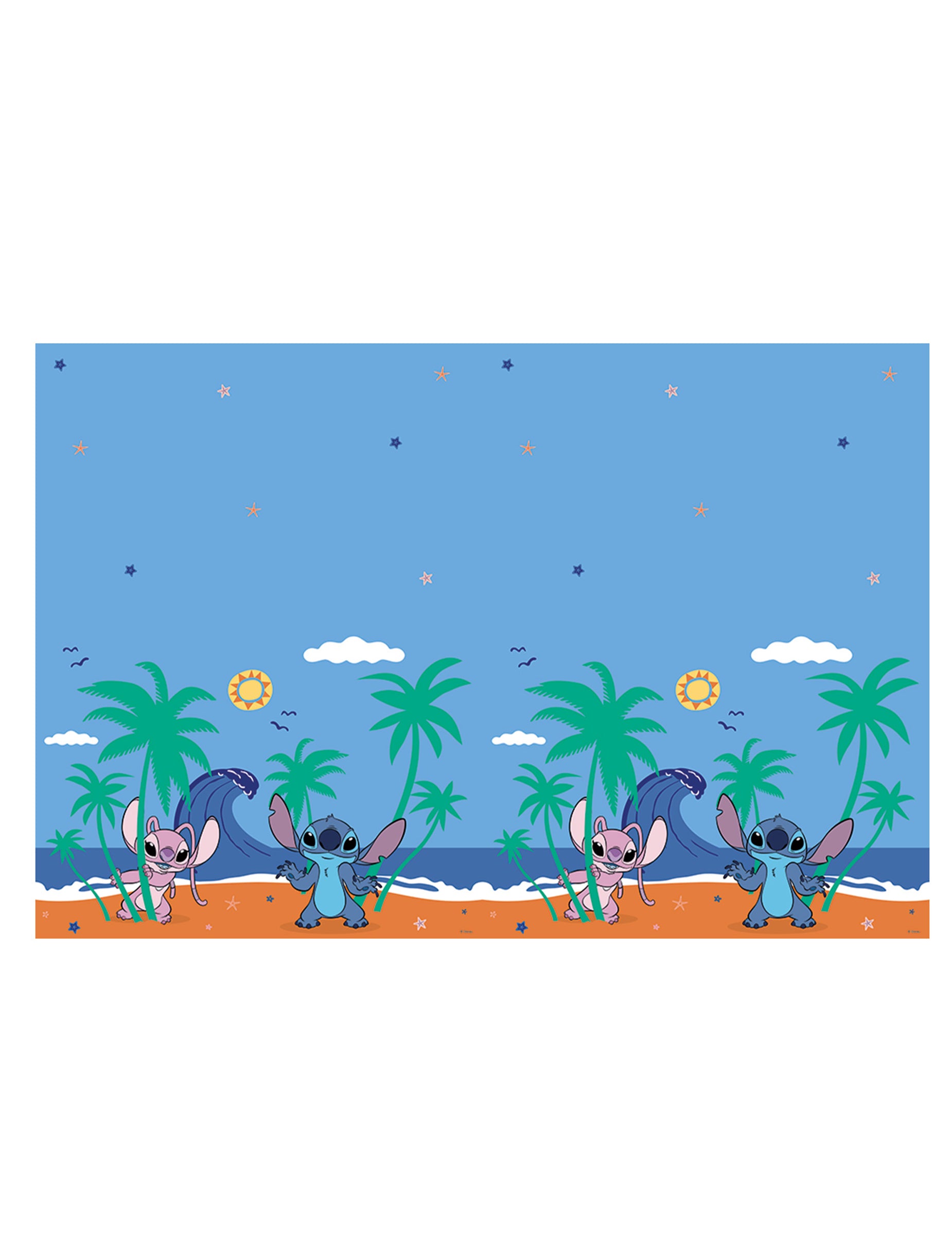 По-долу Официално лицензиран Stitch™Изобразява красиво синьо небе, море и великолепен плаж.бод™ Ангел и Ангел присъстват на покривката.