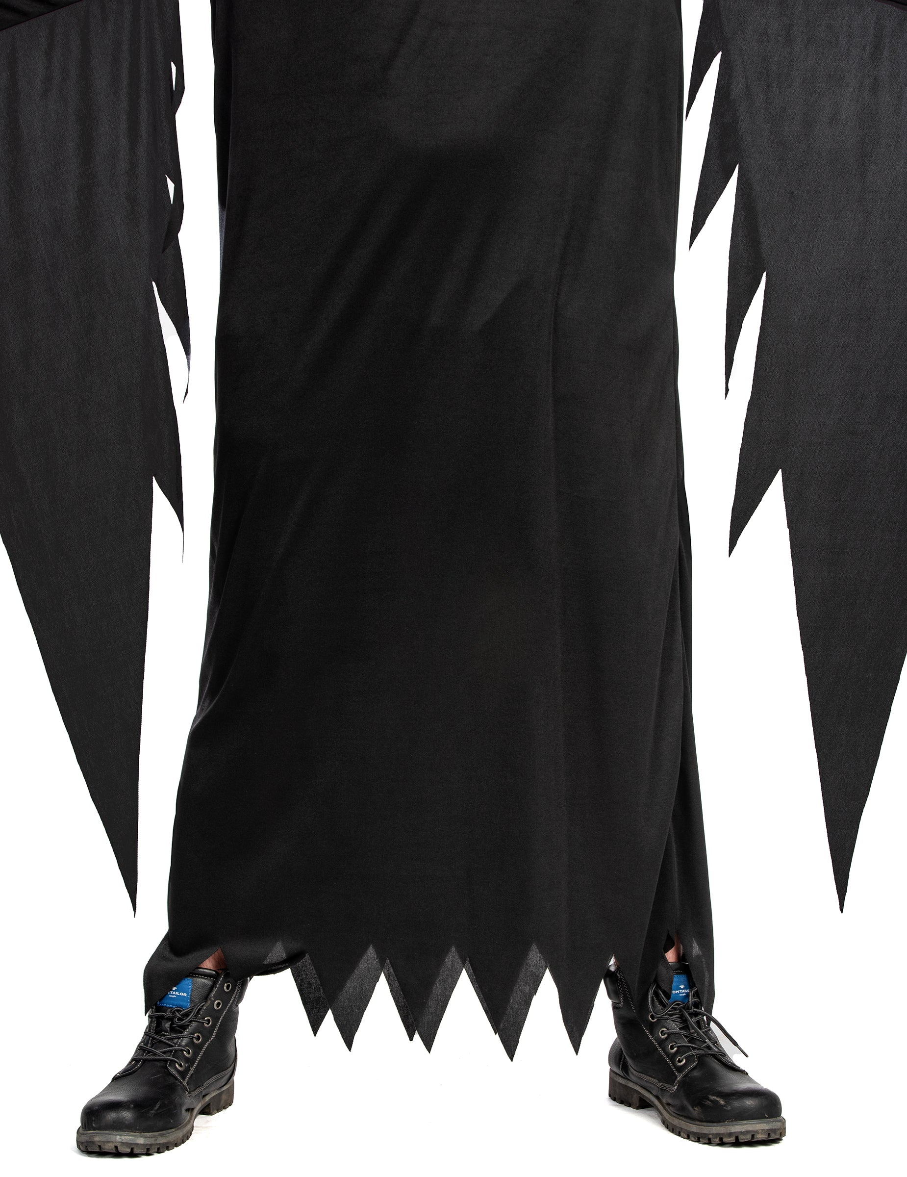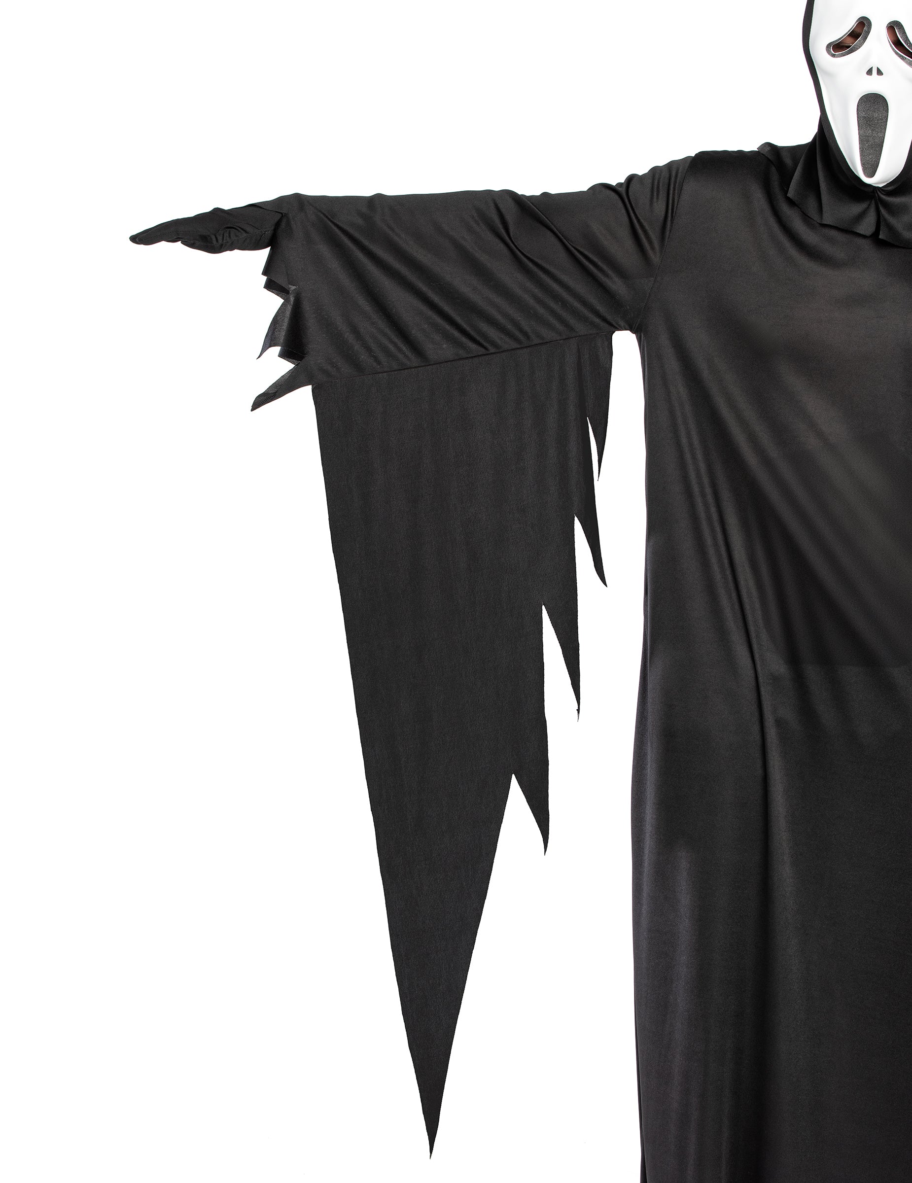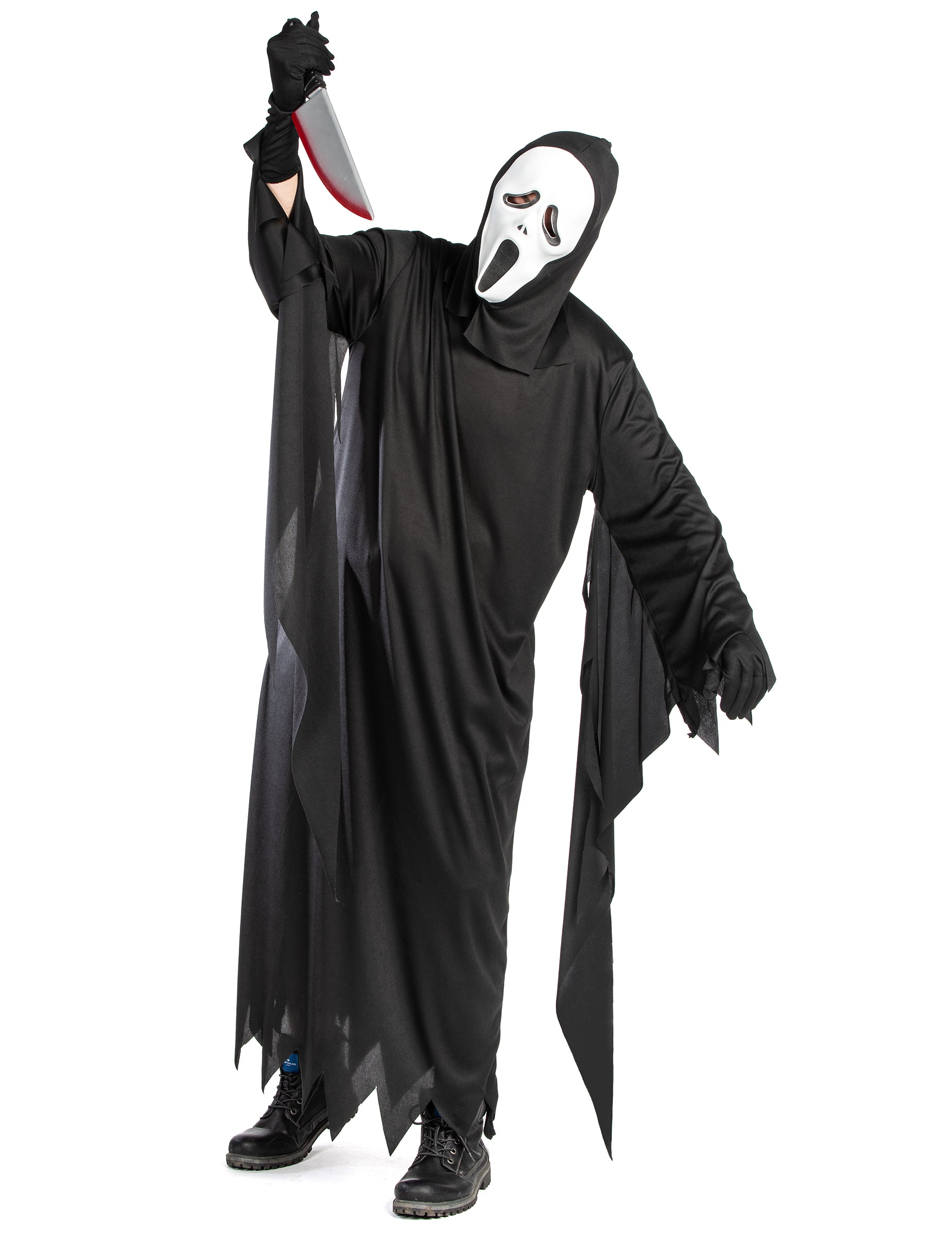 Този мастиран костюм за убийци за възрастни се състои от черна комбинация и ужасяваща маска, идеална за внушаване на страх по време на Хелоуин или всяка прикрита вечер. Черната, течната и светлинната комбинация се спуска към глезените, за да ви обвие в мистериозен вид. Дългите му ръкави и разхлабената тъкан не само осигуряват оптимален комфорт, но и добавят драматичен щрих към всяко от вашите движения, засилвайки вашия махален външен вид. Най -високата точка на тази маскировка е, разбира се, плашещата маска. С изражението си замръзнал в вик на ужас, той напълно крие лицето ви, превръщайки ви в безмилостен убиец и без идентичност. Тази маска напълно покрива лицето, оставяйки само видимите ви очи за още по -смразяващо докосване. Лесен за поставяне и износване, този костюм е идеалният избор за всеки, който иска да се съчетае в света на емблематичните убийци на терористични филми. Независимо дали е да преследвате улиците по време на нощта на Хелоуин или да изплашите приятелите си по време на тематична вечер, този маскиран костюм за убийци гарантира поразителен ефект.