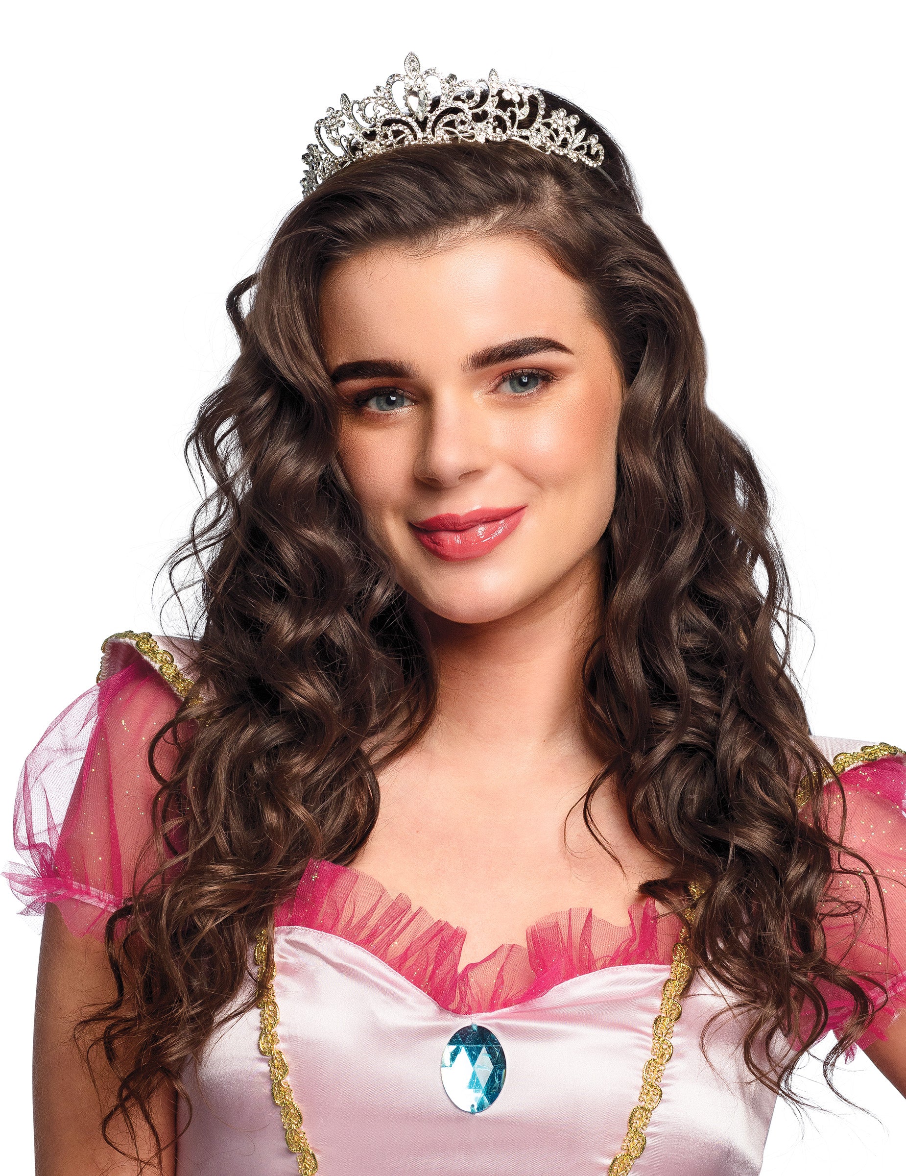 Тази принцеса е за жени. В метал и сребърен цвят той има различни шарки и е декориран с няколко кристала. Станете истинска принцеса с тази тиара по случай карнавал!