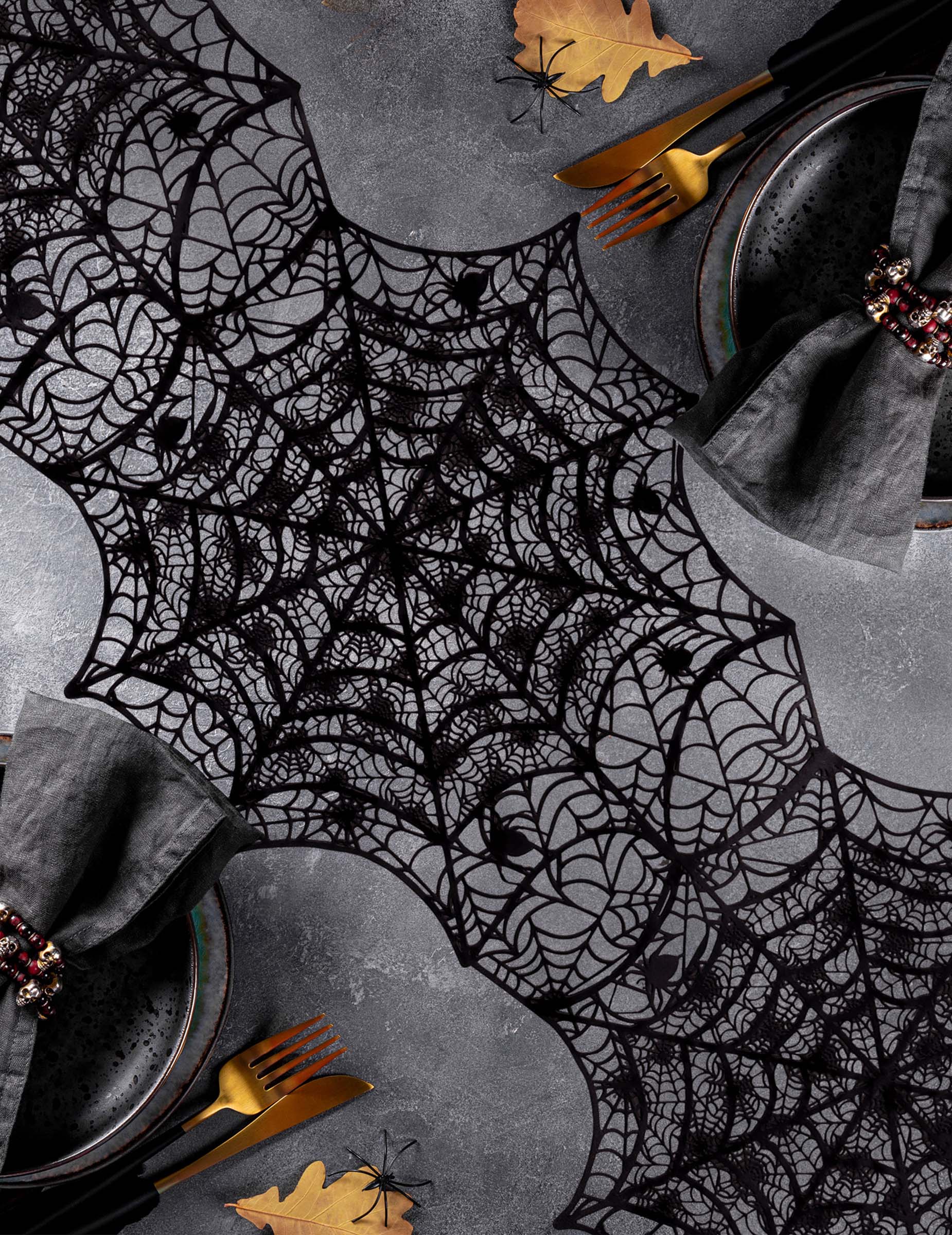 Това платно на паякообразно платно е с ширина около 34 см и дължина 46 см. Изработен от PVC, той има уеб дизайн на Black Spider. Това ще бъде перфектна декорация за идеална спектрална маса за Хелоуин вечер!