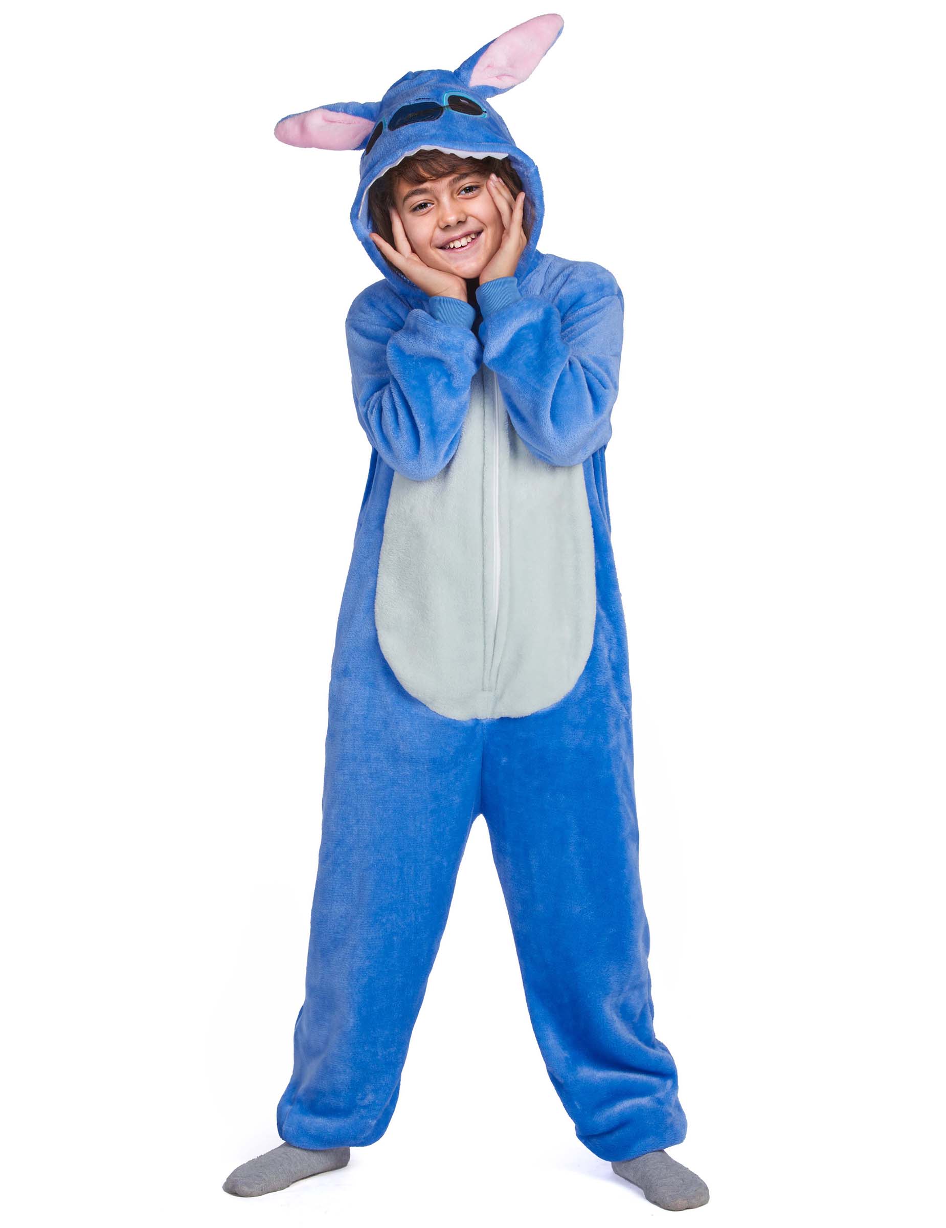 Този костюм на сини извънземни същества е за деца. Съдебният костюм, в ярко синьо, предлага полярен ефект. Той е оборудван с преден цип, което улеснява бързото поставяне. Китките и глезените са еластични за перфектно прилягане. Задният цип позволява на децата да отидат до тоалетната, без да свалят костюма, като добавят нотка на удобство. Качулката разполага с главата на най -сладкото извънземно същество, с големи уши и остри фалшиви зъби. Преобразувайте детето си в очарователно космическо същество с този комбинезон, идеален за карнавал, парти за костюми или тематичен рожден ден. Този уникален костюм обещава омайващи моменти и пълно потапяне във фантастичния свят на странни същества