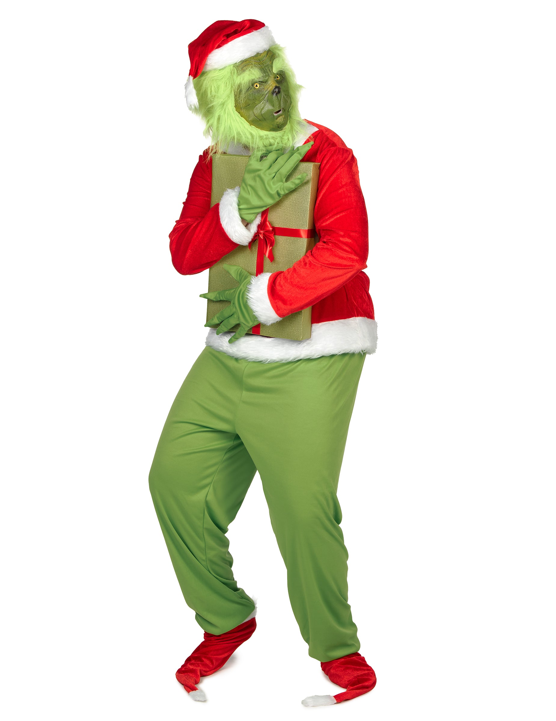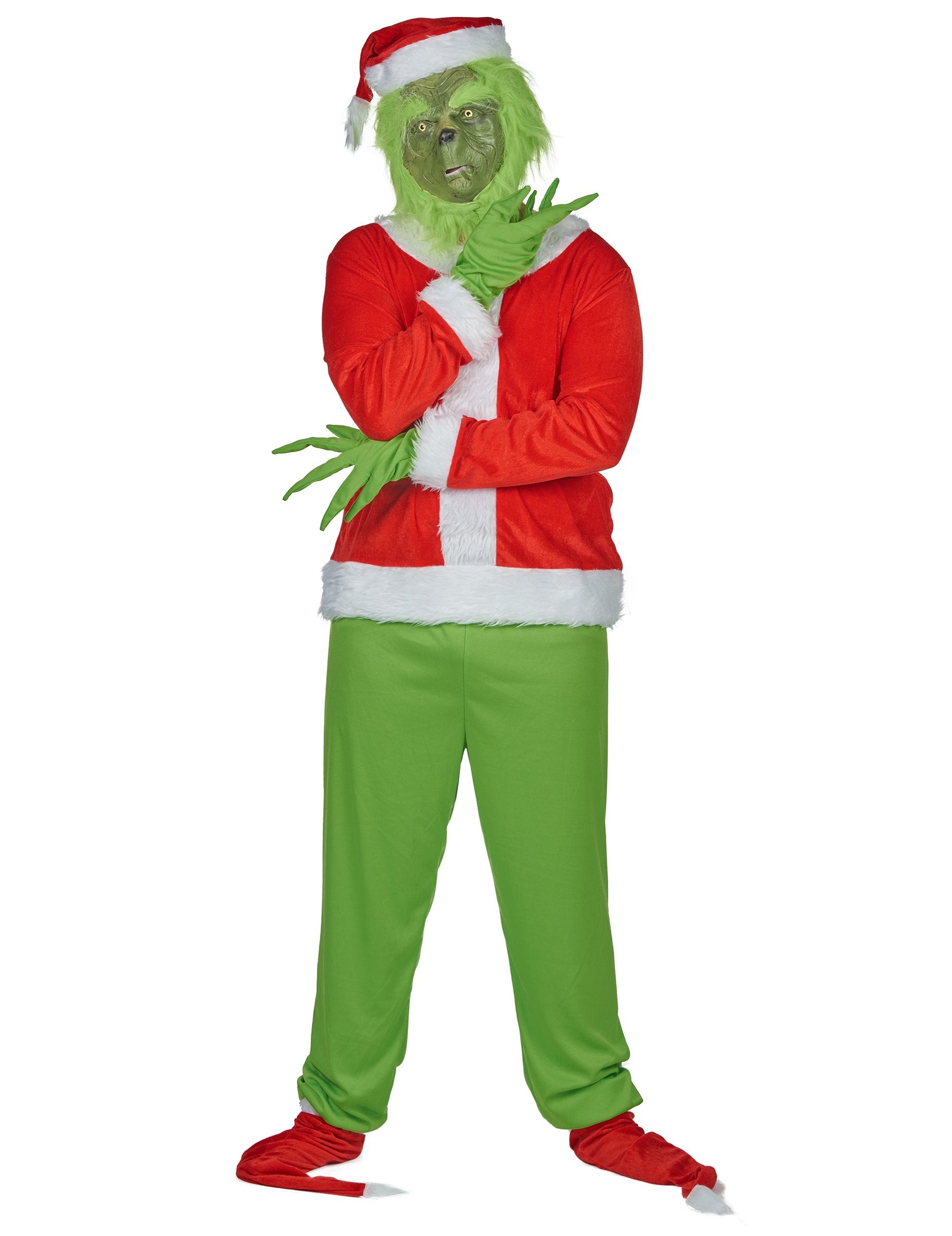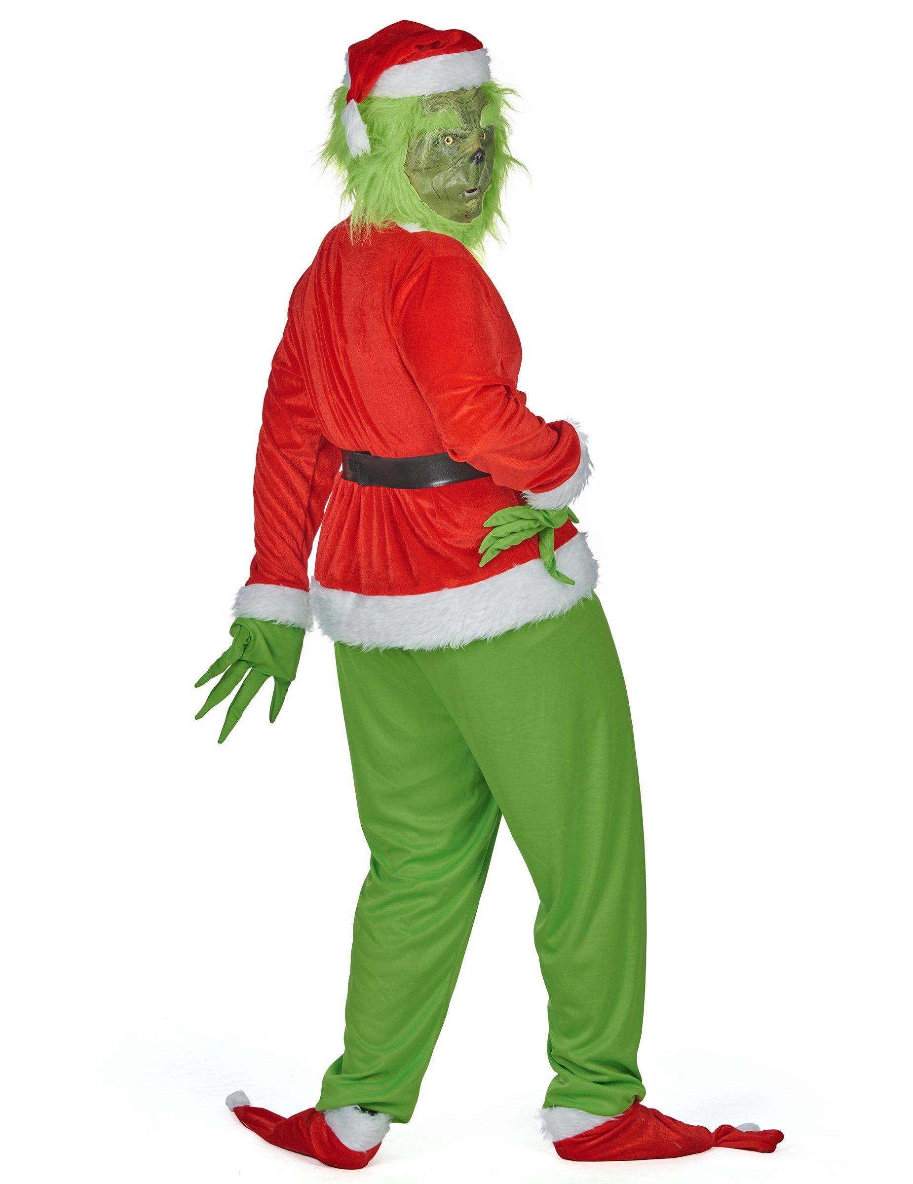 Този мръсен костюм на зелено чудовище за възрастни е идеален за превръщане в емблематичен герой в празничния сезон. Тя включва връх, панталони, маска, колан, ръкавици и шапка. Горната част е в червен цвят костюмът на Дядо Коледа, украсен с мека синтетична козина с ръкавите. Черният колан, изработен от пяна, е лесно прикрепен и перфектно завършва тоалета. Маската е проектирана да възпроизведе чертите на известното коледно зелено чудовище, с космат текстура и реалистичен вид. Ярко зелените панталони са проектирани в лека и разширяема материя, гарантирайки комфорт и свобода на движение. Удължените зелени ръкавици перфектно имитират заострените и закачени пръсти на героя, докато червено -бялата коледна шапка идва да внесе последното докосване на този запомнящ се костюм. Въплътете известния мърморещ на приказния филм с тази коледна мръсна маскировка ще бъде идеална за изненадване и забавление по време на прикрито парти, карнавал или Коледа.