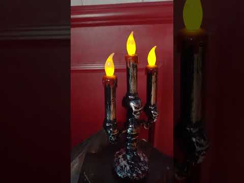 Тази декорация представлява LED свещник. С мярка от около 32 см, той има 3 клона с фалшиви глави мъртви като декорация. Със сивкав и застаряващ Aspcet, той е декориран от много реалистичен LED пламък, който ще работи с две батерии AALR6 (не са включени). Тази декорация на свещи ще бъде идеална за завършване на вашата интериорна декорация по време на вашата ужасна вечер за Хелоуин!