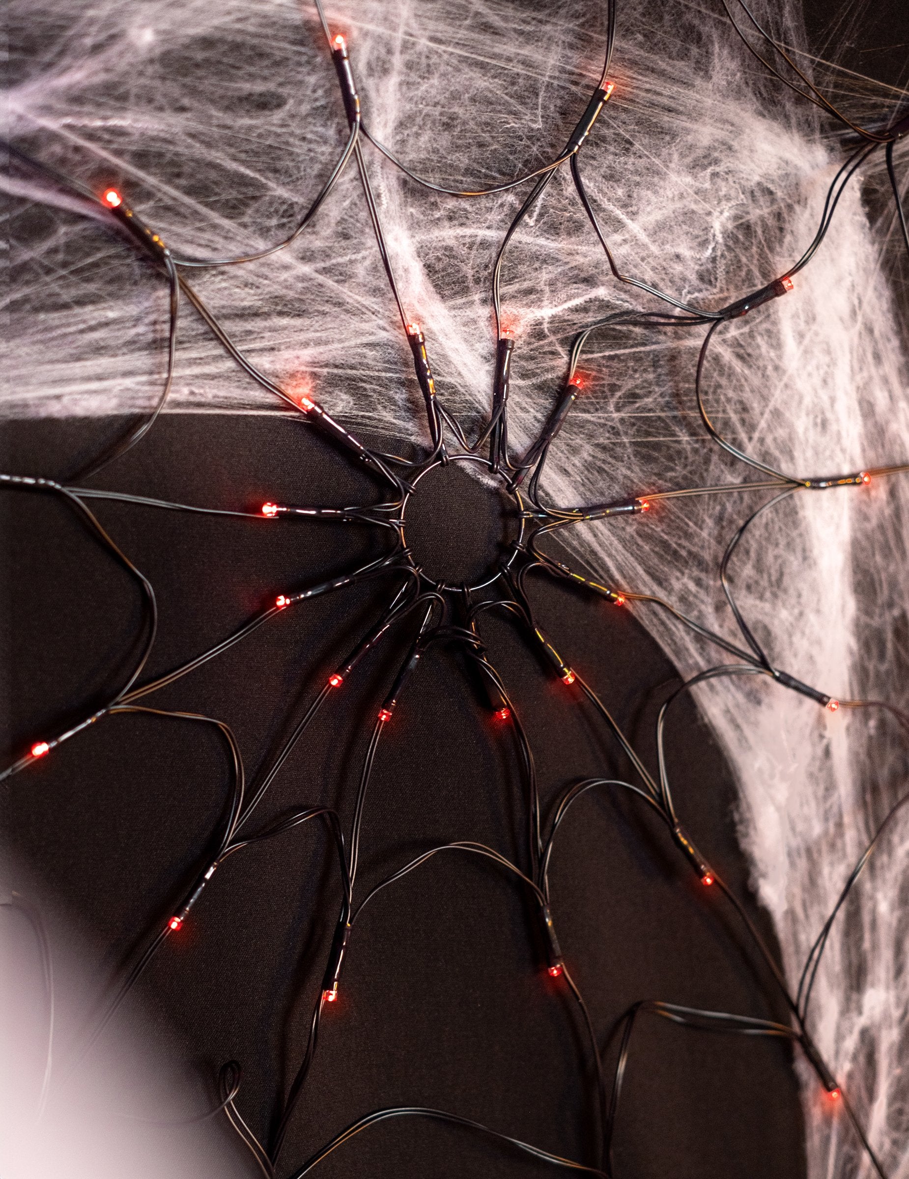 Тази LED светеща паяжина е пластмасова и е с диаметър 1 метър. Декорацията е декорирана с бели светодиоди, които ще осветят вашия интериор или екстериор. Лесно е да се инсталира благодарение на тези интегрирани куки. В допълнение, тя не изисква електрическа връзка, 2 батерии AA (не са включени) ще ви позволят да осветявате паяжината. Осветлявайте вашата вечер на Хелоуин, като окачите тази ярка паяжина на вашата врата или прозорец, къщата ви ще бъде още по -плашеща!