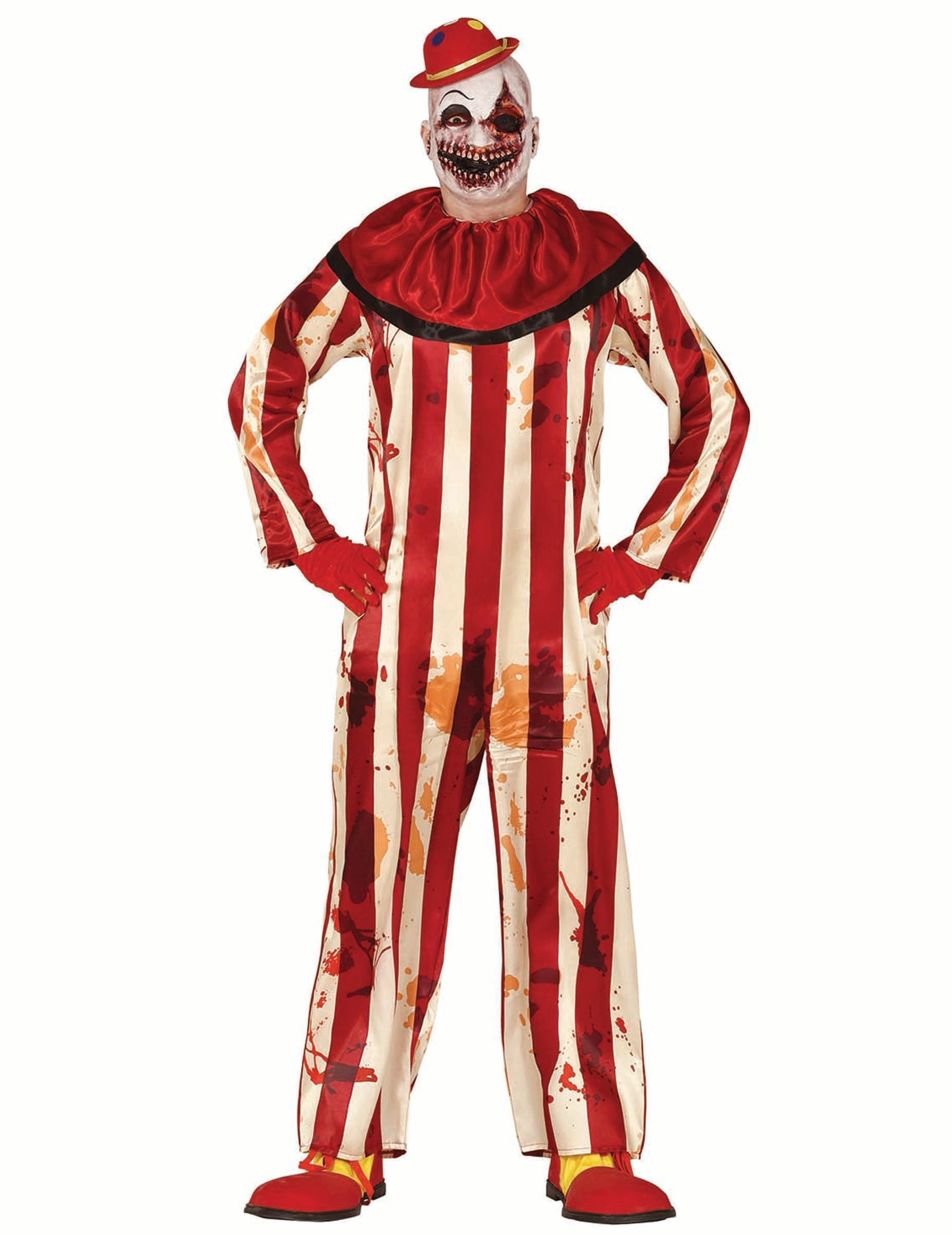 Този ужасяващ костюм на клоун за тийнейджъри включва комбинация и пропуск. Комбинацията, с червени и бели ивици, е дълга -потапяща и украсена с плашещи детайли като пръски от фалшива кръв, подчертавайки зловещия аспект на костюма. Червената оцветена яка завършва тоалета, добавяйки окончателно зловещо докосване до прикриване. Перфектен за Хелоуин, този зъл костюм на клоун ще ви направи най -ужасяващия човек на партито!
