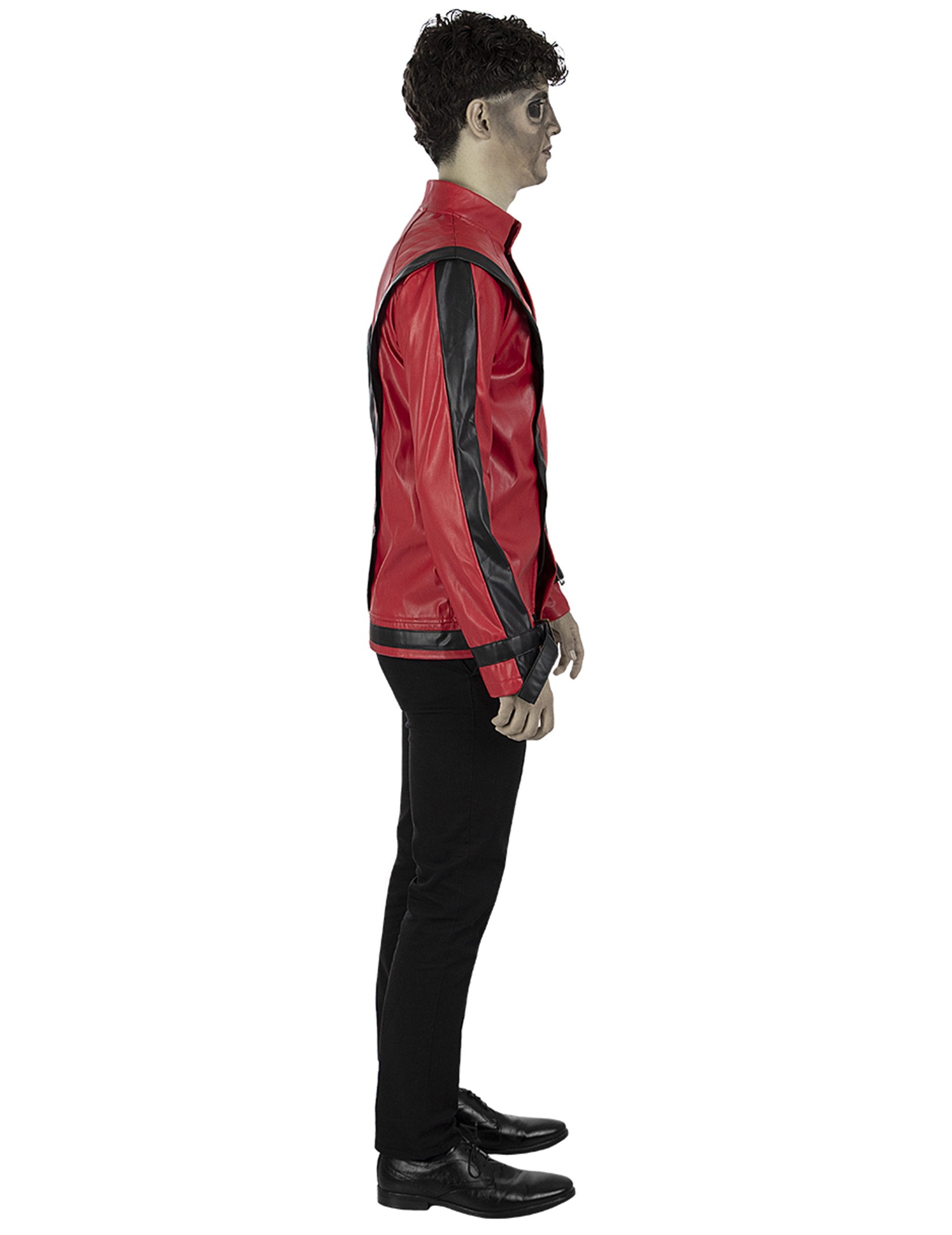 Въплътете се в краля на попа и преживейте отново емблематичния музикален видеоклип на трилъра с това яке за възрастни, вдъхновено от легендарния външен вид на Майкъл Джексън. Перфектен за заклети фенове и носталгични по този невероятен момент от историята на музиката, този костюм ще ви потопи директно в тъмната и мистериозна вселена на Thriller. Якето от червена изкуствена кожа е украсено с контрастни черни детайли, които вярно напомнят на облеклото, носено от Майкъл Джексън в музикалния видеоклип. Със своя структуриран дизайн и безупречни покрития, той е едновременно стилен и удобен, идеален за движение и танци, като същевременно остава верен на духа на героя. Независимо дали за костюмирано парти, Хелоуин или в знак на почит към поп културата, това яке ще се превърне в ключовия елемент в трансформацията ви в харизматично танцуващо зомби.