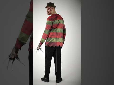 Този официално лицензиран костюм на Фреди Крюгер включва горна част с щампи на червени и зелени райета, ужасяваща маска и ръкавица с нокти за пълна и плашеща трансформация. Дългата горна част, вярна на стила на героя, включва реалистични износени детайли за зловещ ефект. Страховитата маска копира емблематичното изгорено лице. Ръкавицата с остри нокти завършва този легендарен външен вид, идеален за всяване на ужас по време на вашите партита с костюми. Този официално лицензиран костюм е идеален за Хелоуин, вашите тематични събития или всеки повод, когато искате да въплътите истинска легенда на ужасите!
