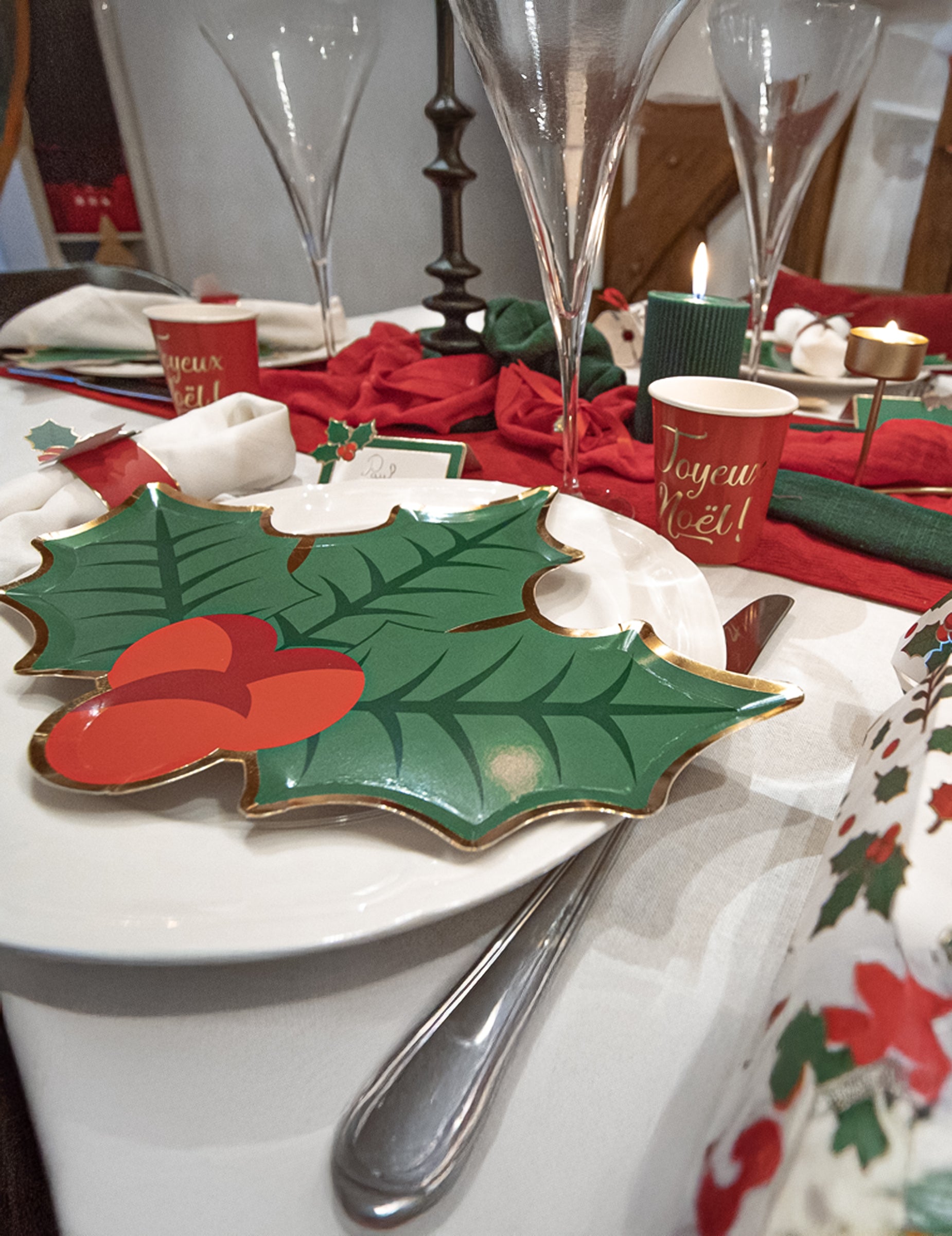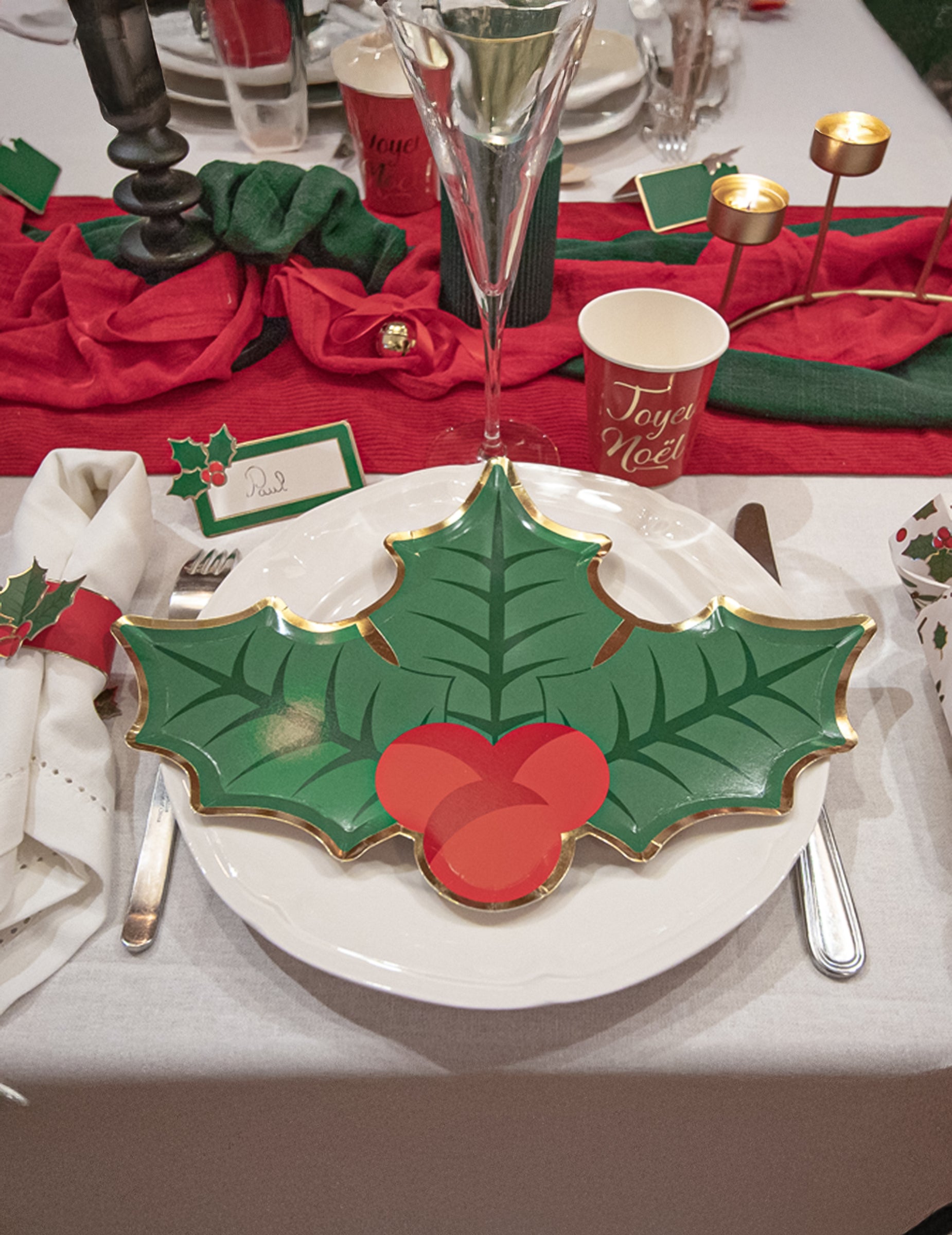 Добавете празничен щрих към празнуването на Нова година с този комплект 8 чинии Оригинални картонени фигурки във формата на листа. Размери приблизително 23 x 32 cm, всяко парче се показва 3 зелени листа от холи украсени с червени плодове и подчертани от елегантна златна рамка. Тези Коледни чинии с джел са идеалният аксесоар за подобряване на вашето Коледни украси за маса и впечатлете гостите си.