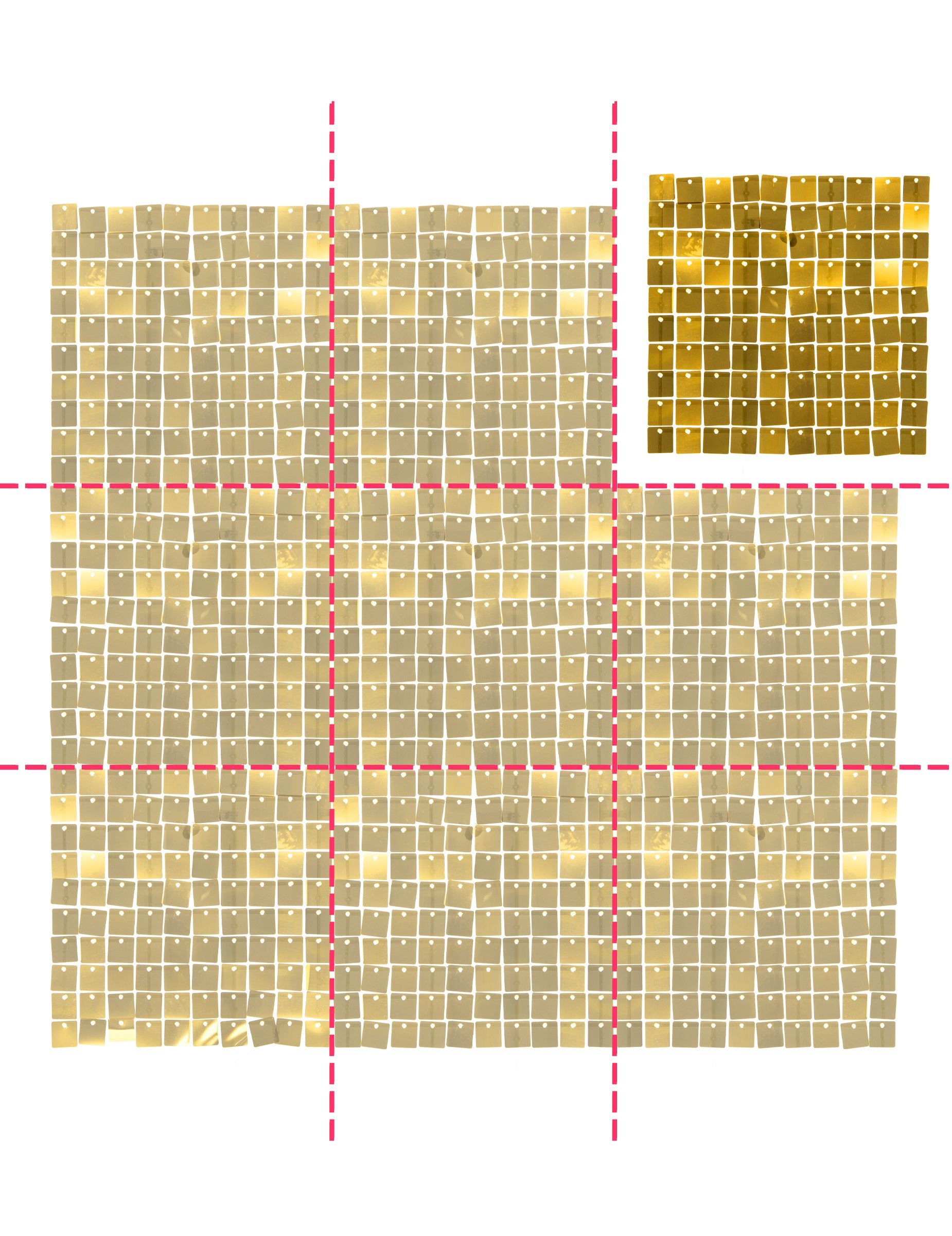Този панел 30 x 30 cm е съставен от малки лъскави златни плочки, идеални за празнична и изискана декорация. Това е идеалният елемент за създаване на бляскав фон на снимката, независимо дали за рожден ден, новогодишно парти или друго събитие по златната тема. Практически съвет: За оптимално изобразяване и цялостно покритие на стената е препоръчително да сглобите няколко (около 6 панела с височина за площ 1m80). Добавете нотка на елегантност към вашия декор с този искрящ панел!