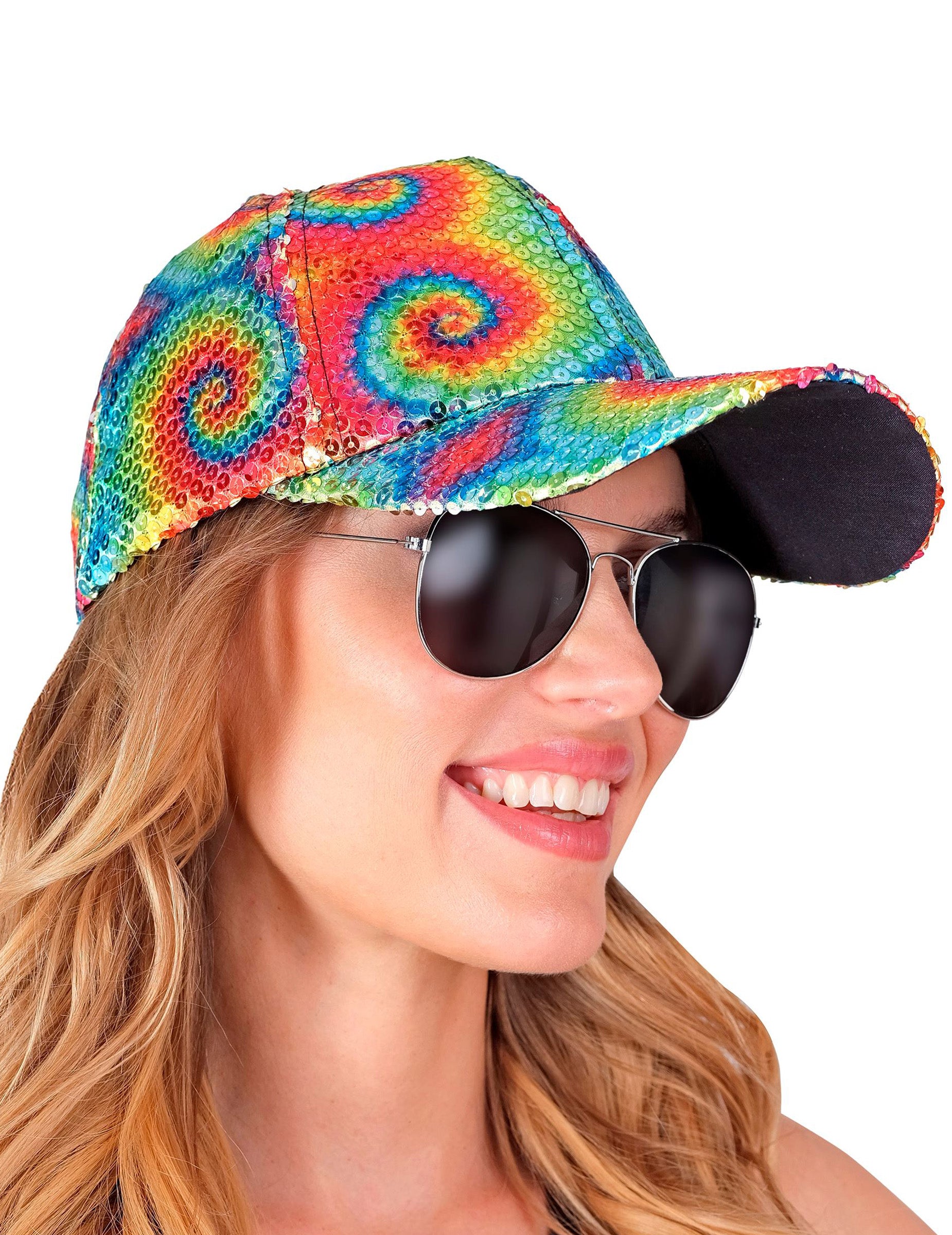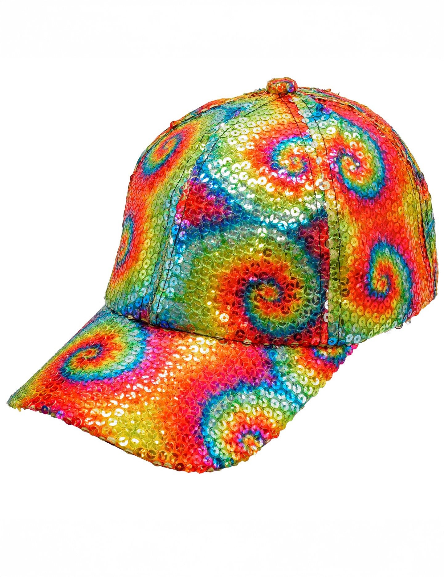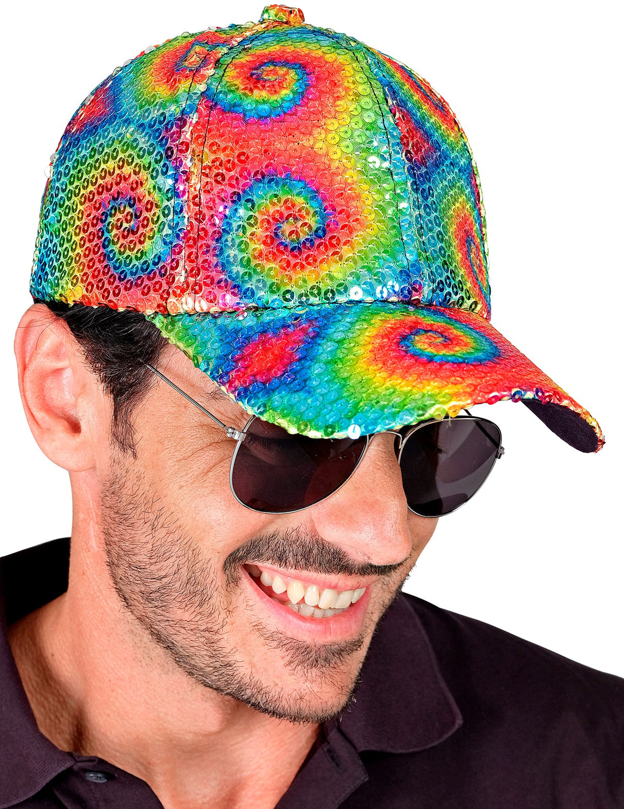 Направете изявление с тази многоцветна капачка за пайети, вдъхновена от спираловидния модел на вратовръзка и боя. Лек и удобен, той е покрит с искрящи пайети, които отразяват светлината, подчертавайки ярките му цветове с акценти на дъгата. Класическата му извита козирка добавя докосване, което е едновременно спокойно и оригинално. Благодарение на корекцията си отзад, той лесно се адаптира към всички размери за перфектна поддръжка. Идеален за фестивал, тематична вечер или празнично събитие, тази шапка изпълнява цветно облекло с ретро и ярко докосване.
