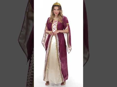 Този средновековен принцески костюм за жени включва дълга рокля и златна корона.