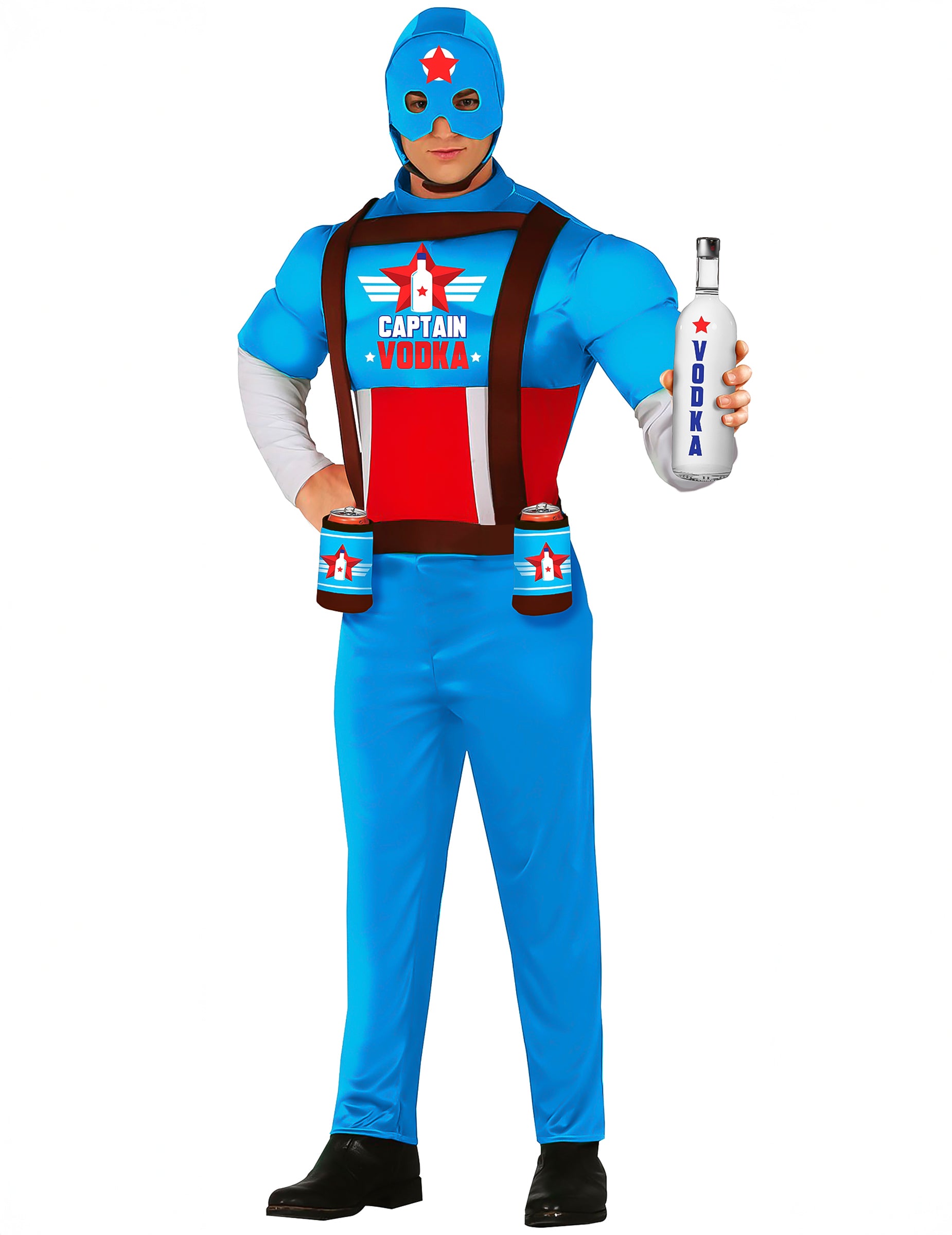 Този костюм Captain Vodka за възрастни включва подплатен топ с мускулест ефект, съчетан сини панталони, качулка за мистериозна визия и колан с държач за чаши, за да държите напитките си винаги под ръка.