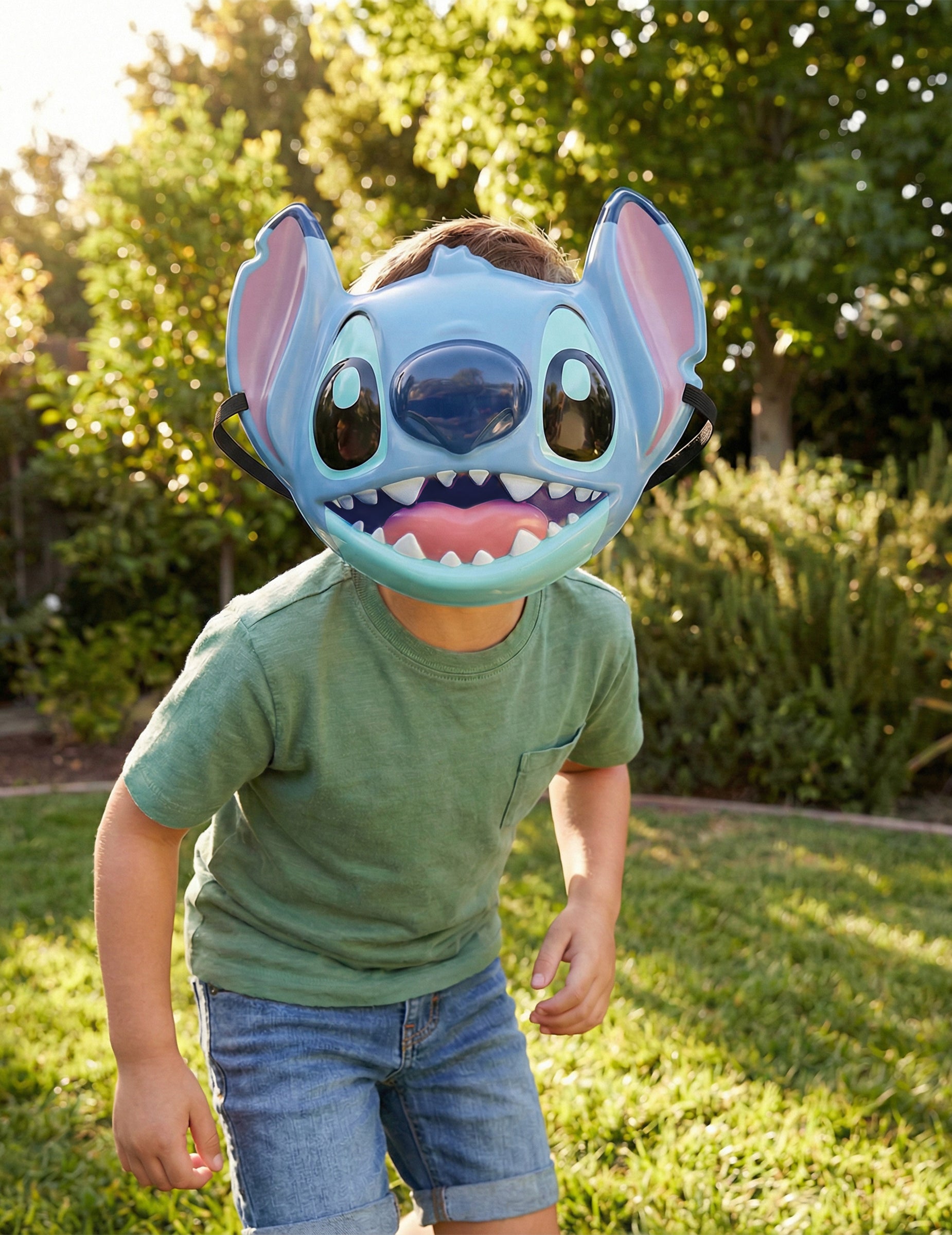 Тази твърда маска разполага с емблематичните характеристики на Стич, с големите му цветни уши, пакостна усмивка и искрящи очи. Снабден с регулируем еластик, той гарантира удобно прилягане. Перфектен за завършване на костюм на Lilo + Stitch или добавяне на оригинално докосване към фантастично парти рокля!