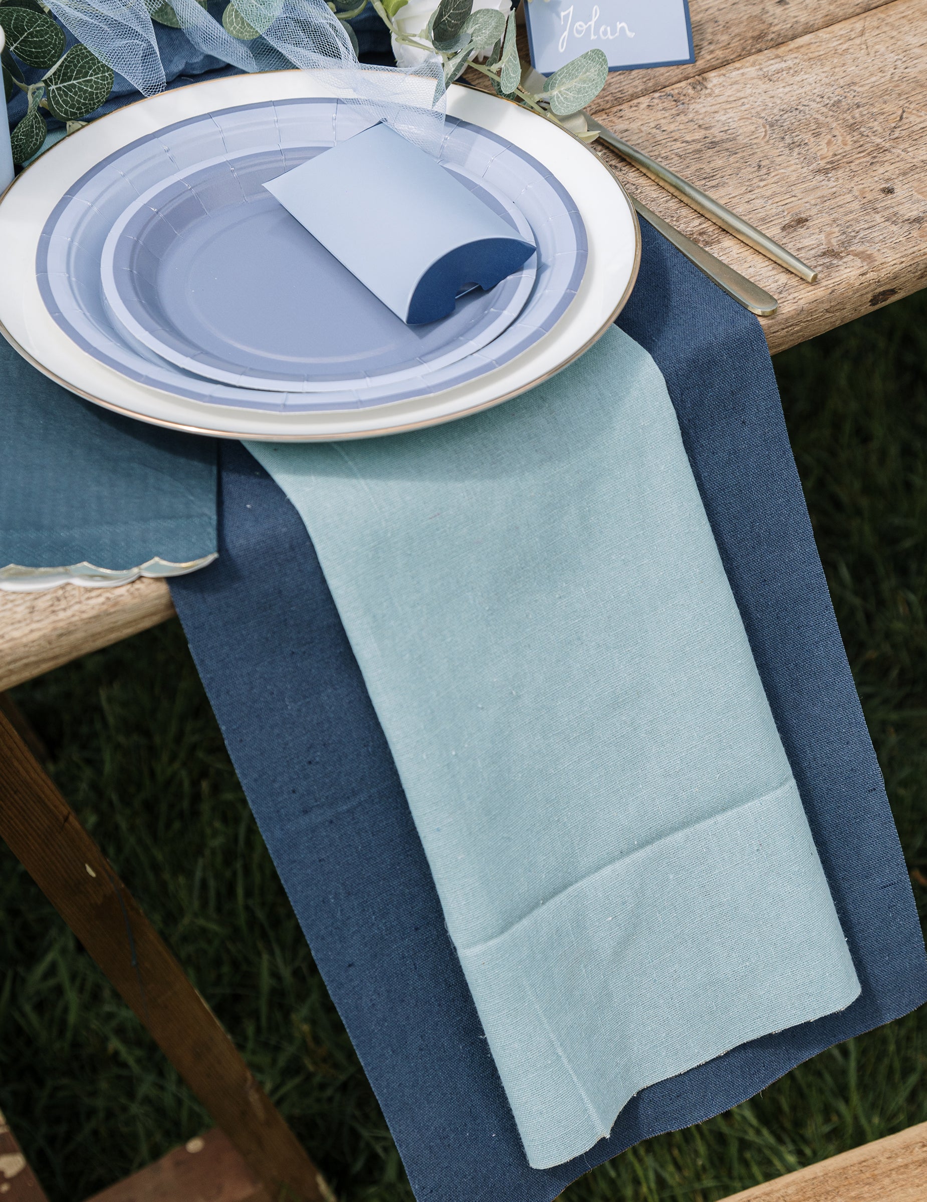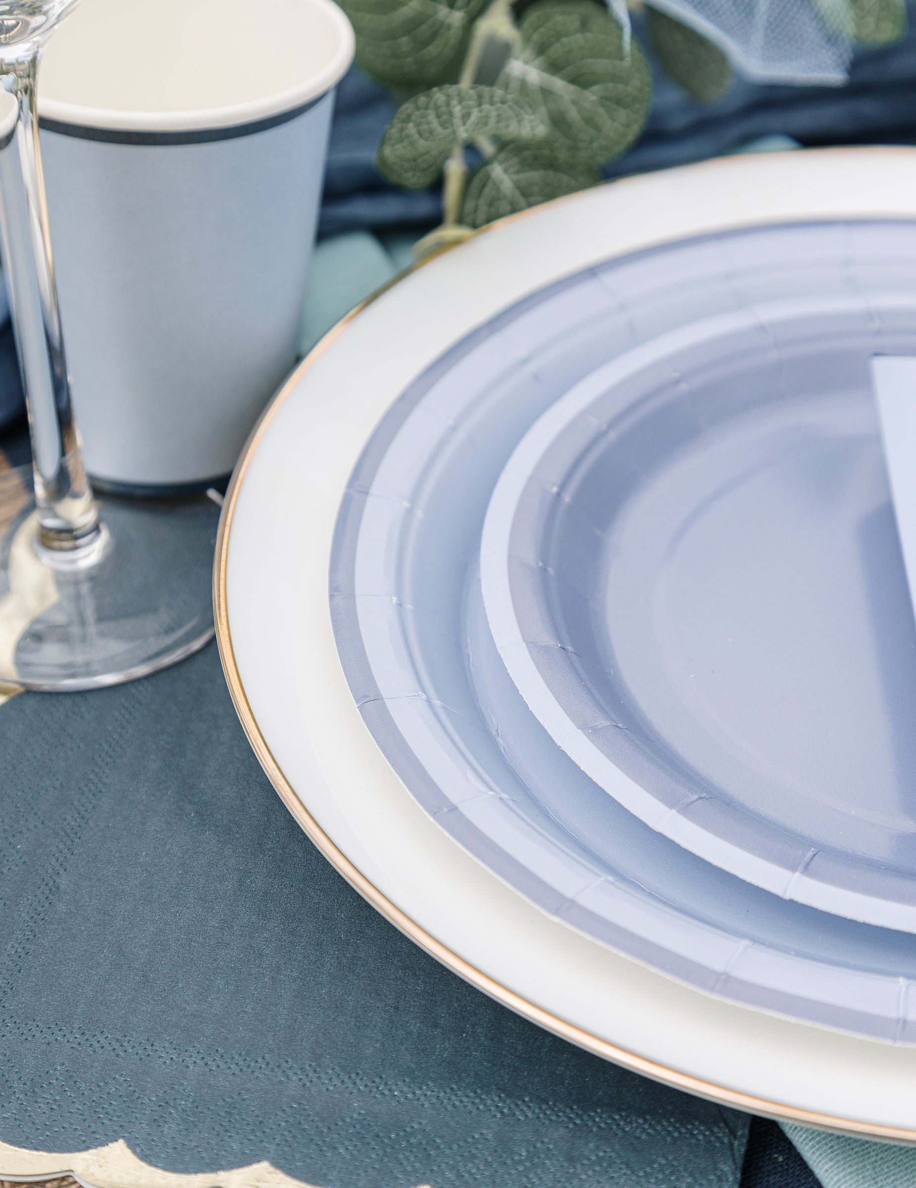 6 двуцветни картонени чинии в синьо и тъмносиньо, 22,5 см, шикозен дизайн