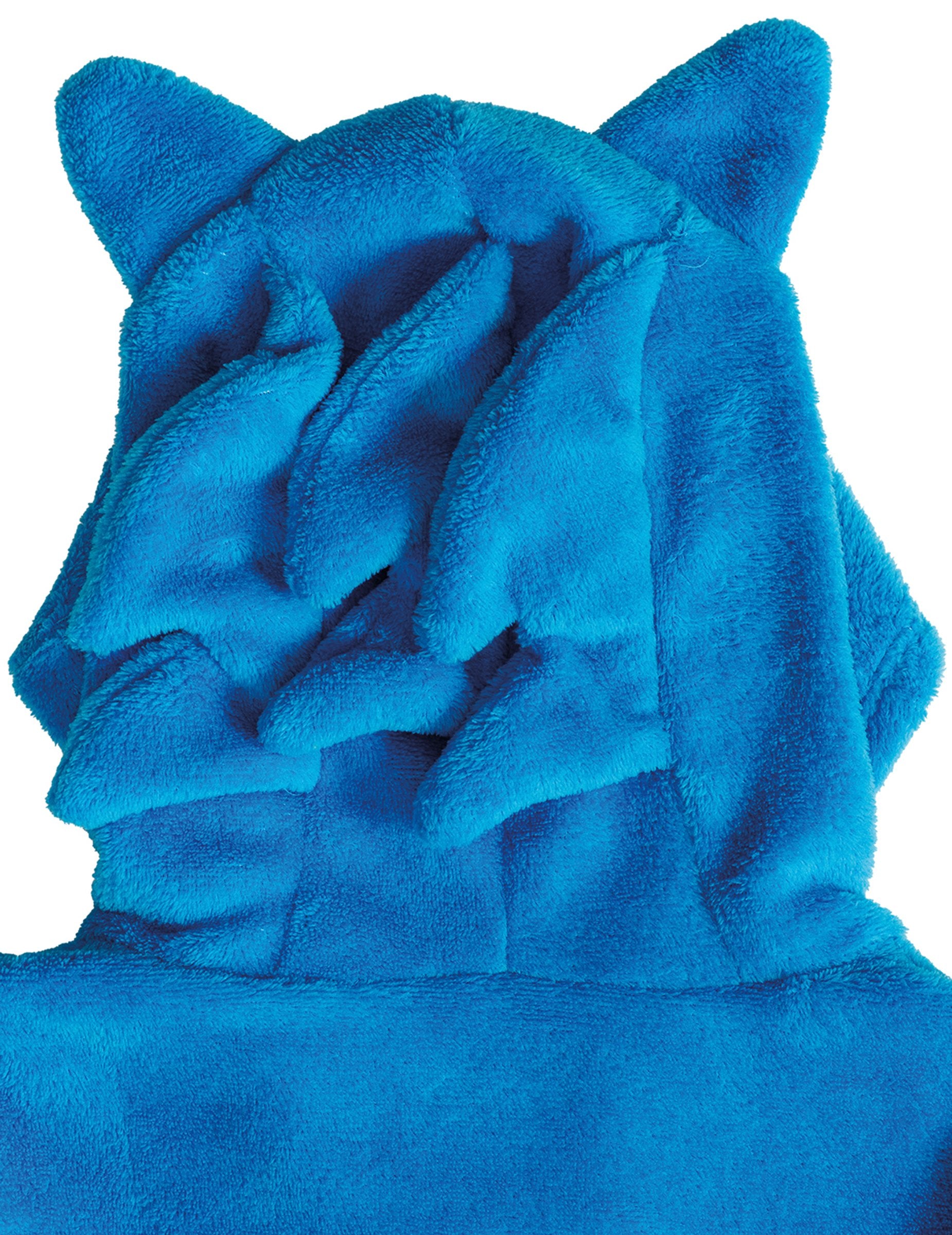 Този детски костюм на Соник е под формата на син гащеризон с прикрепена качулка, вдъхновен от най-известния свръхзвуков таралеж във видеоигрите. Качулката е украсена с емблематичните бодли на Соник, с принтирани очи и повдигнати уши за визия, вярна на героя. Детайли като бежовото коремче и прикрепените бели ръкавици перфектно пресъздават външния му вид. Идеален за рожден ден, карнавал или маскарадно парти, този официално лицензиран костюм позволява на вашето дете да се потопи в динамичния и ретро свят на Соник за миг.