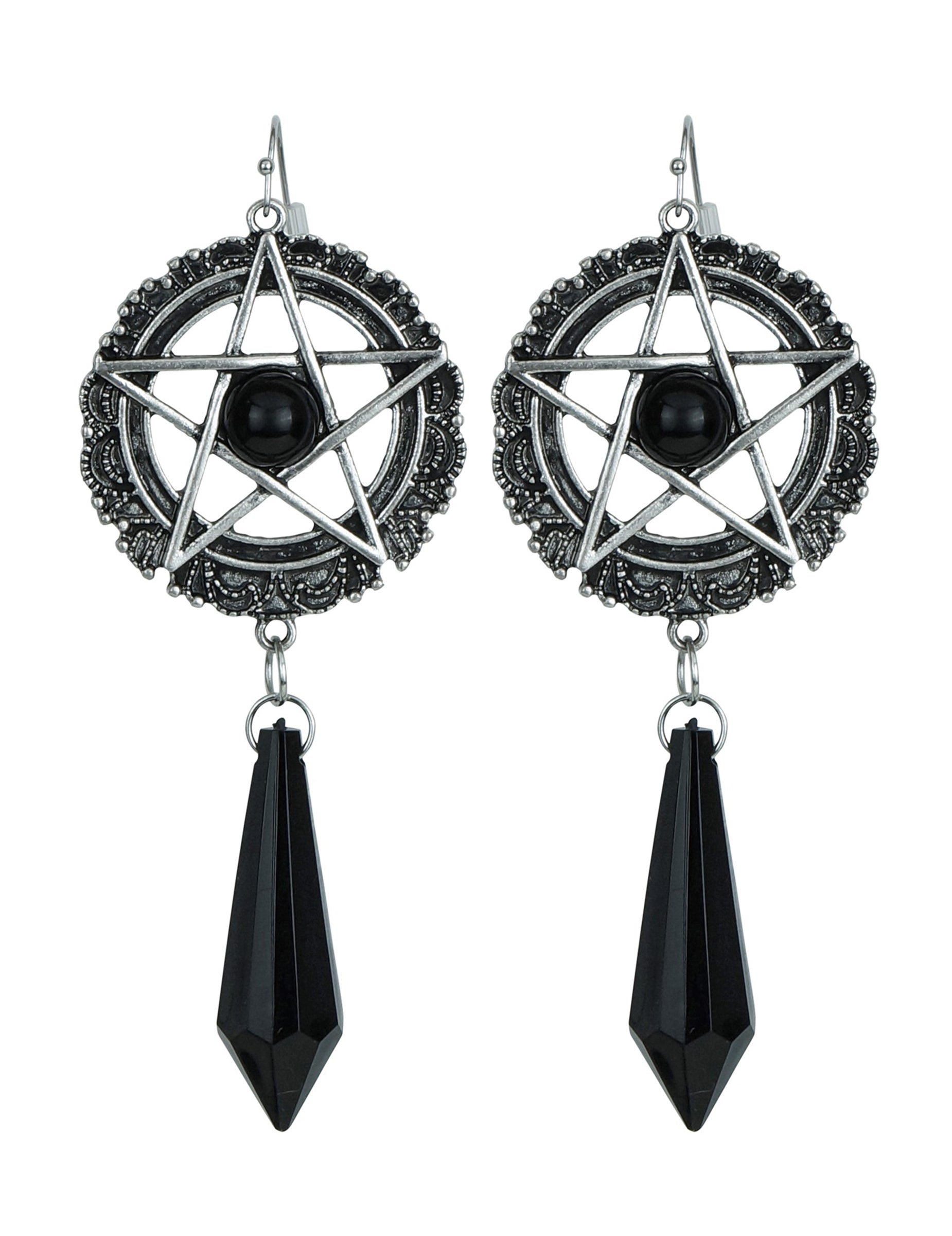 Ces boucles d’oreilles étoiles sataniques noires affichent un design saisissant pour parfaire un look sombre et mystérieux. Composées de pentagrammes argentés entourés de détails travaillés et ornées de gouttes noires pendantes, elles évoquent l’univers gothique et occulte. Légères et spectaculaires, elles se portent facilement et attirent tous les regards. Idéales pour Halloween, une soirée ésotérique ou un déguisement de sorcière ou prêtresse noire, ces boucles ajoutent une touche ténébreuse et raffinée à votre tenue.