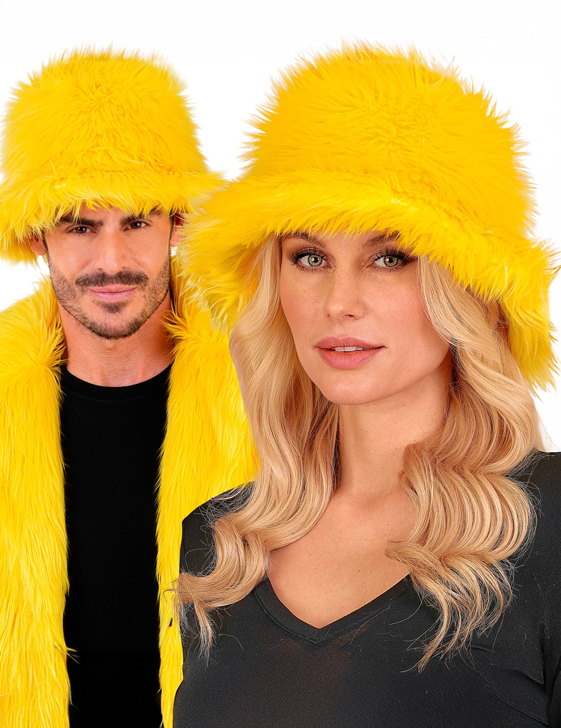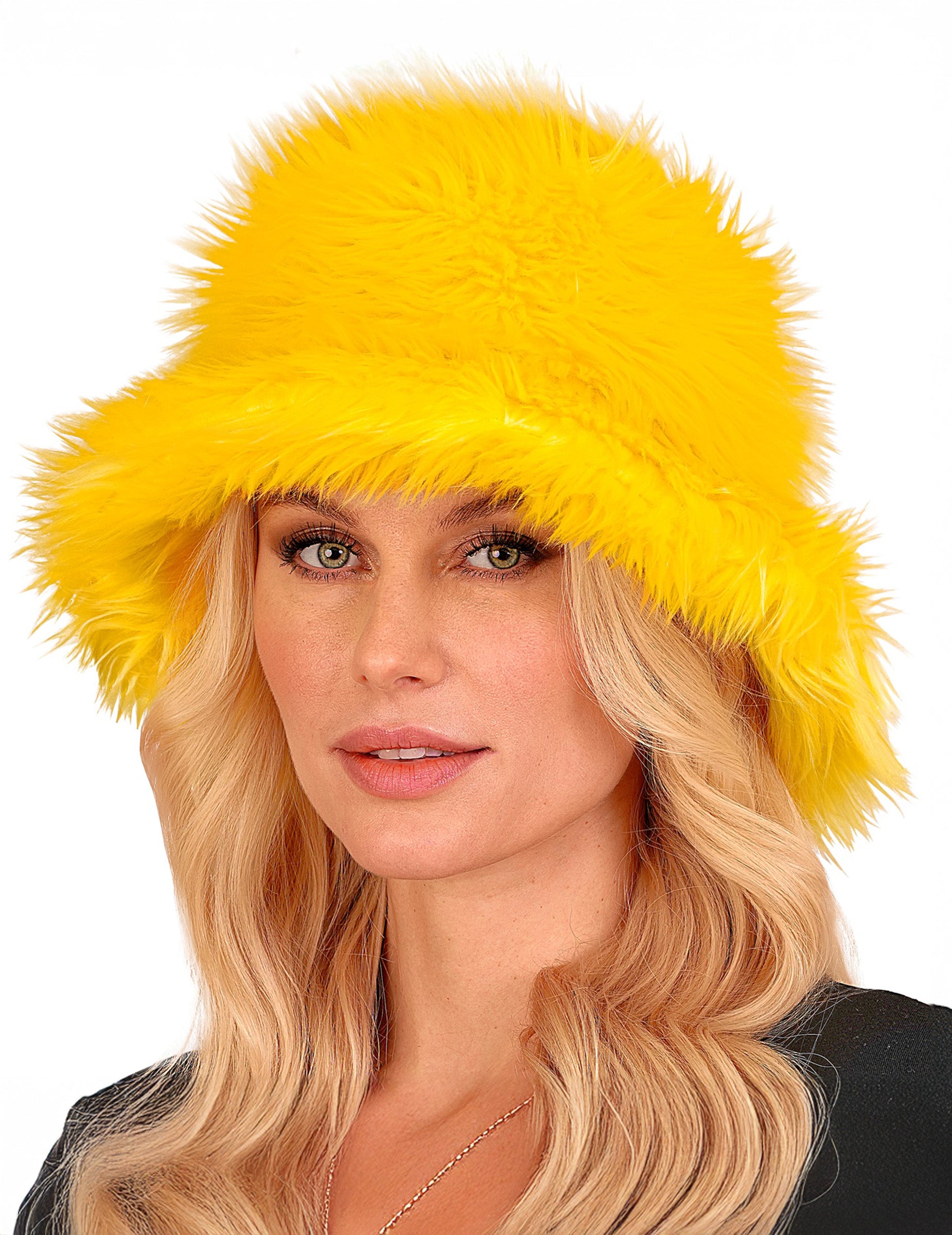 Тази жълта шапка тип боб от изкуствена кожа придава ярък и свеж акцент на вашия парти визия. Нейният наситен цвят и мека текстура я правят едновременно забавен и забележим аксесоар. Идеална за карнавал, парти с костюми или цветно събитие, тази шапка ще внесе слънчево настроение във вашия тоалет.