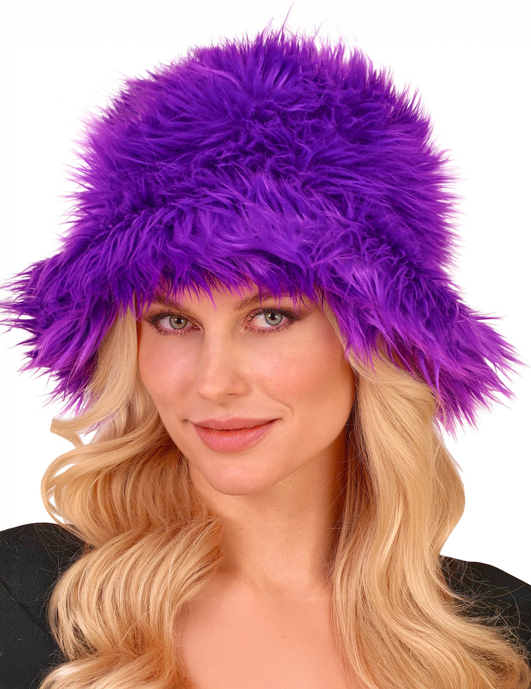 Misez sur l'originalité avec ce bob en fausse fourrure violette. Sa texture douce et son coloris intense attirent tous les regards, pour un effet garanti lors de vos événements festifs. Ce chapeau complète à merveille un look disco, années 90 ou extravagant, idéal pour un Carnaval, un festival ou une soirée costumée haute en couleur.