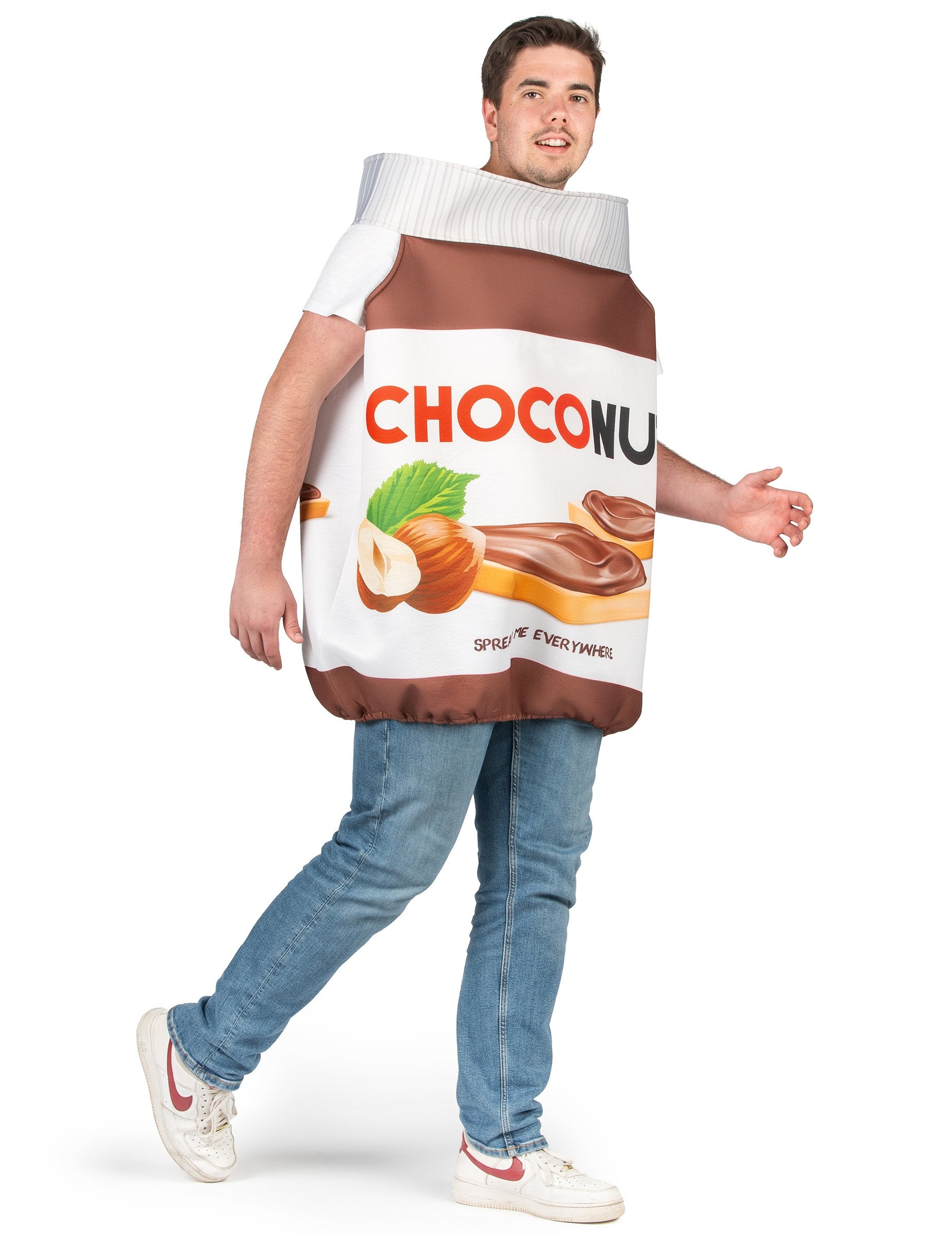 Този костюм за възрастни с форма на буркан с шоколад обещава сладък и необичаен щрих към вашите костюмирани партита. Изработен от пяна, той е оформен като буркан с известното лакомство, допълнен с щампа на препечен хляб, покрит с шоколад, лешници и мигновено разпознаваемото лого. Сребърната яка, стилизирана на капак, засилва илюзията за току-що отворен буркан. Свободната кройка е с ластик в подгъва за заоблен силует, който остава перфектно на мястото си по време на вашите празненства. Лесно се носи върху семпъл тоалет за максимален комфорт и свобода на движение. Този оригинален костюм е идеален за карнавал, парти с кулинарна тематика или всеки друг повод, където хуморът и оригиналността са ключови.
