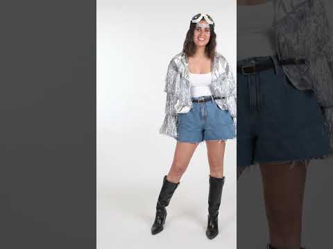 Пригответе се да блестите ярко с това сребърно яке с ресни за жени, идеално за вашите западни тематични партита, фестивали или предавания. Този модел разполага със сребърен метален ефект, декориран с дълги искрящи ресни по ръкавите и гърдите. Разхлабеният му дизайн гарантира стилен и удобен силует, перфектен за придружаване на къси панталони, дънки или пола, както желаете. Краткото рязане подчертава небрежния стил, като същевременно подчертава движението на ресни с всяка стъпка. Това яке със сребърно женско яке ще бъде вашият съюзник за оригинален външен вид, пълен с характер.