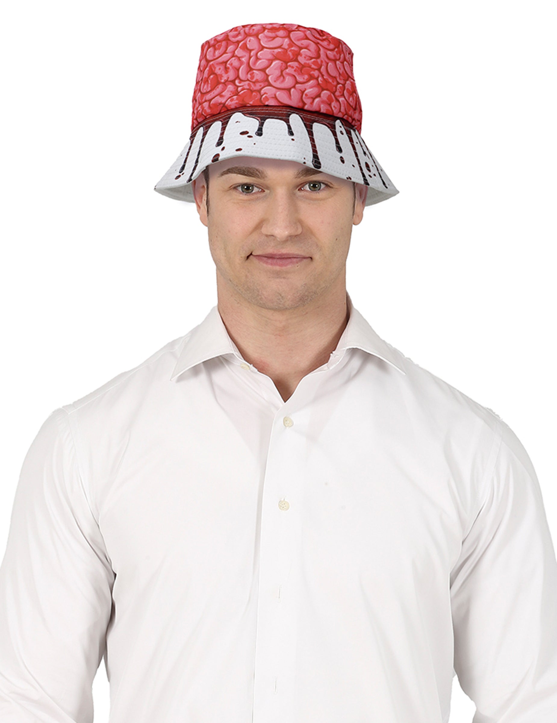 Ce bob cerveau ensanglanté pour adulte donne une touche horrifique immédiate à un déguisement de zombie ou de patient d’hôpital sorti d’un cauchemar. Avec son haut rouge imprimé d'un cerveau apparent et son bord blanc couvert de traces de sang, il attire tous les regards lors d’une soirée d’Halloween, d’un événement gore ou d’une fête à thème horreur. Un accessoire original pour compléter une tenue terrifiante sans en faire trop.
