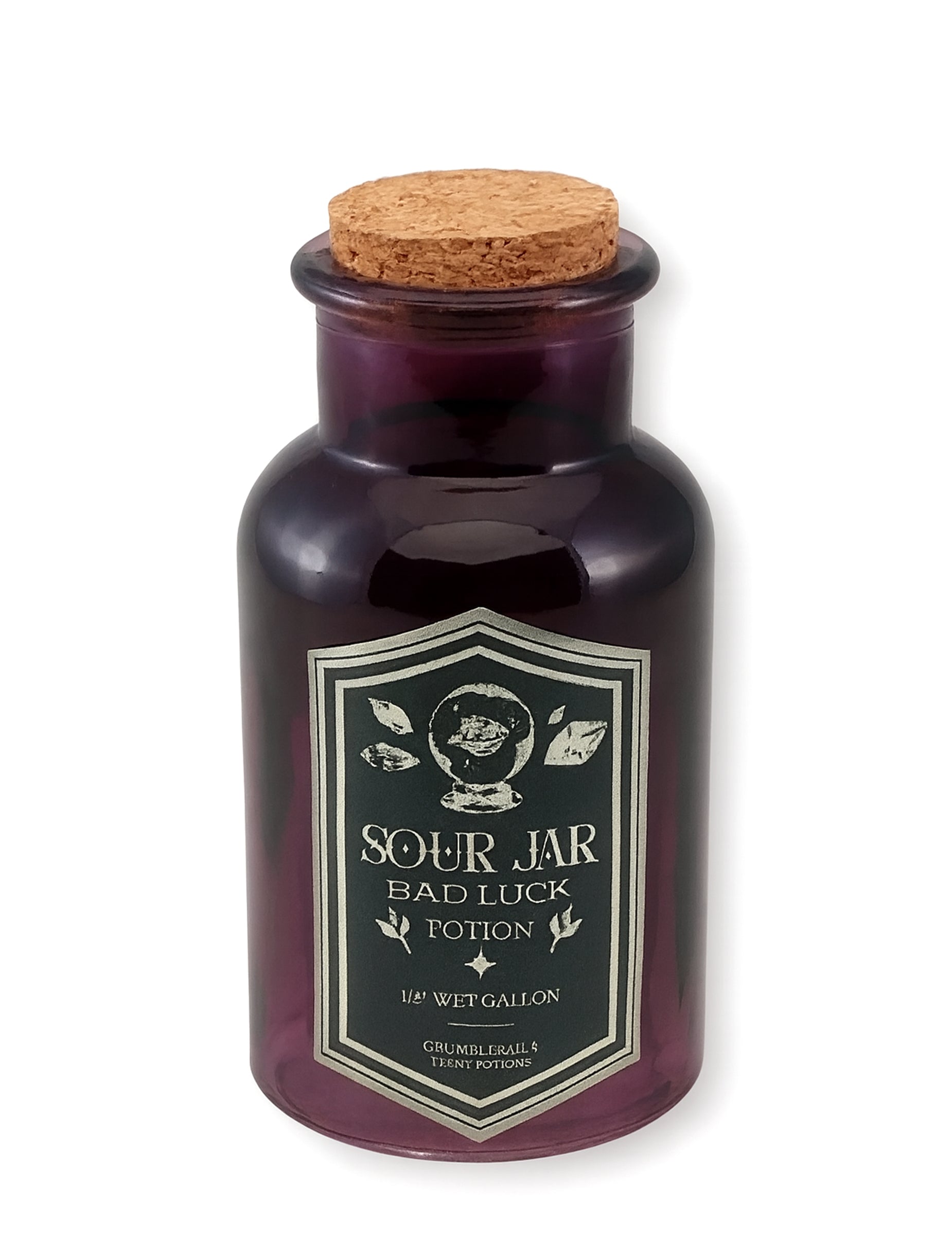 Този лилав стъклен "кисел буркан" 13.5 cm Хвана окото със стария си аптекарски вид. Черният му етикет с езотеричен стил, комбиниран със селски корк запушалка, го прави обект на избор за магически дисплей. В идеалния случай тя допълва декорацията на Хелоуин, пропита с лош късмет и мистерия.